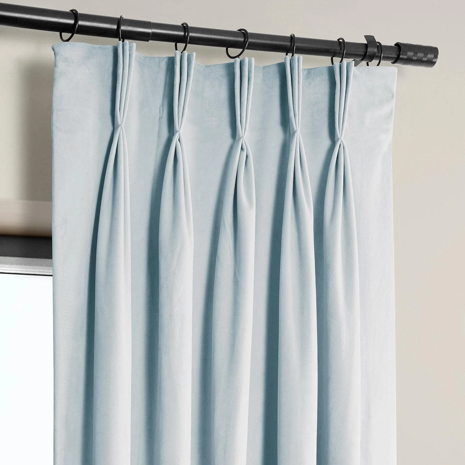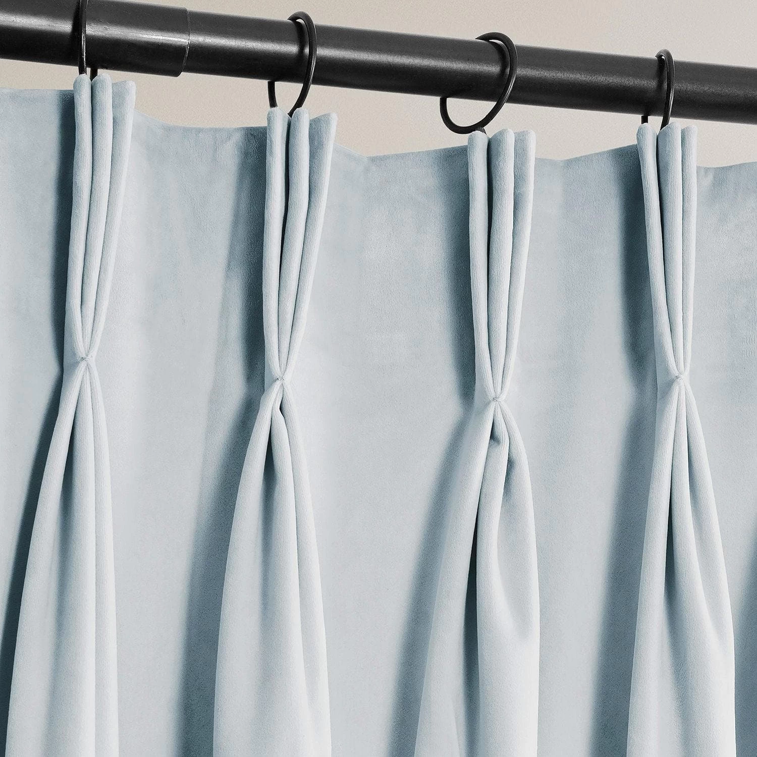 Aquarius Blue French Pleat Heritage Plush Velvet Curtain