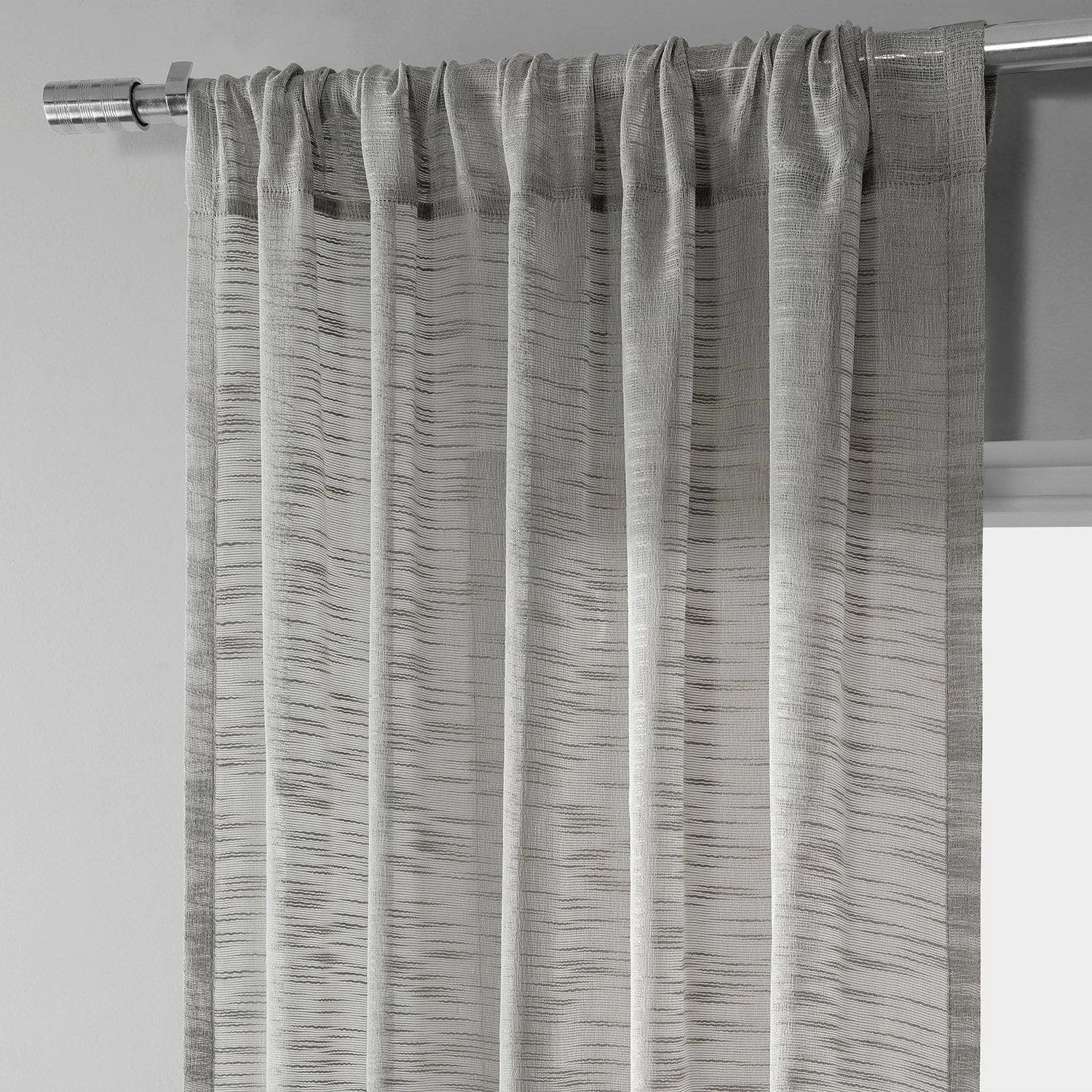 Azure Grey Faux Linen Sheer Curtain Pair (2 Panels)
