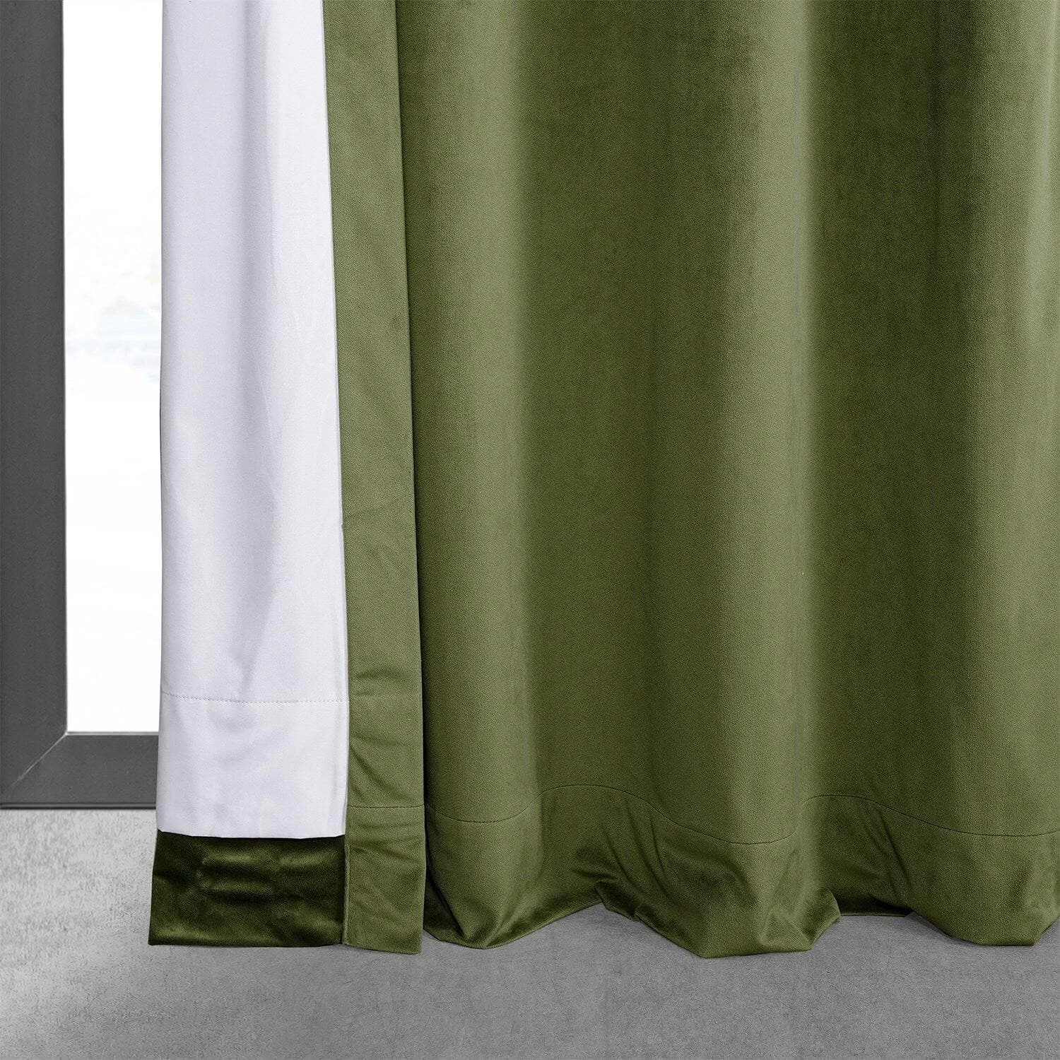 Basque Green is a fresh olive basil green tone. This luxurious velvet curtain is lined with off white thermal fabric.