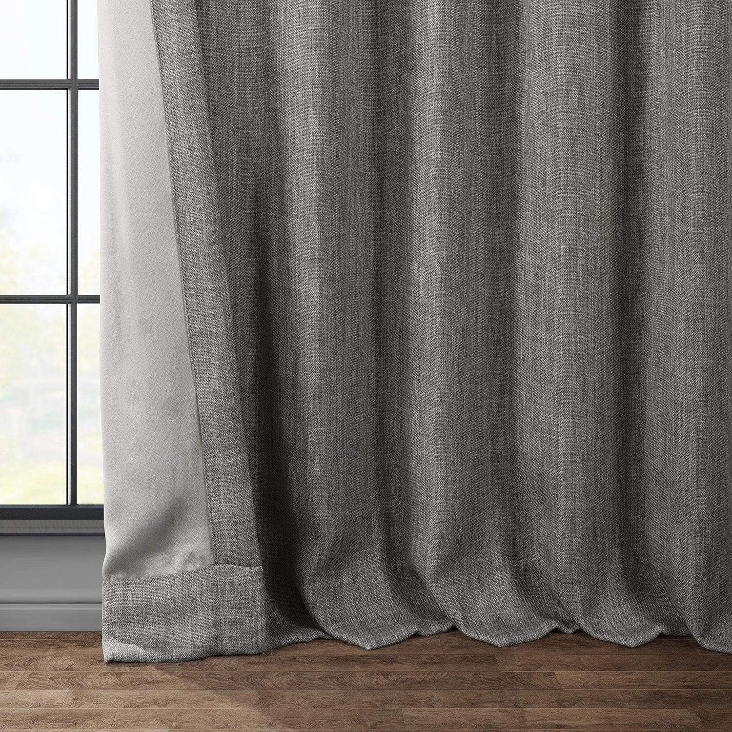 Blazer Grey Textured Faux Linen Room Darkening Curtain