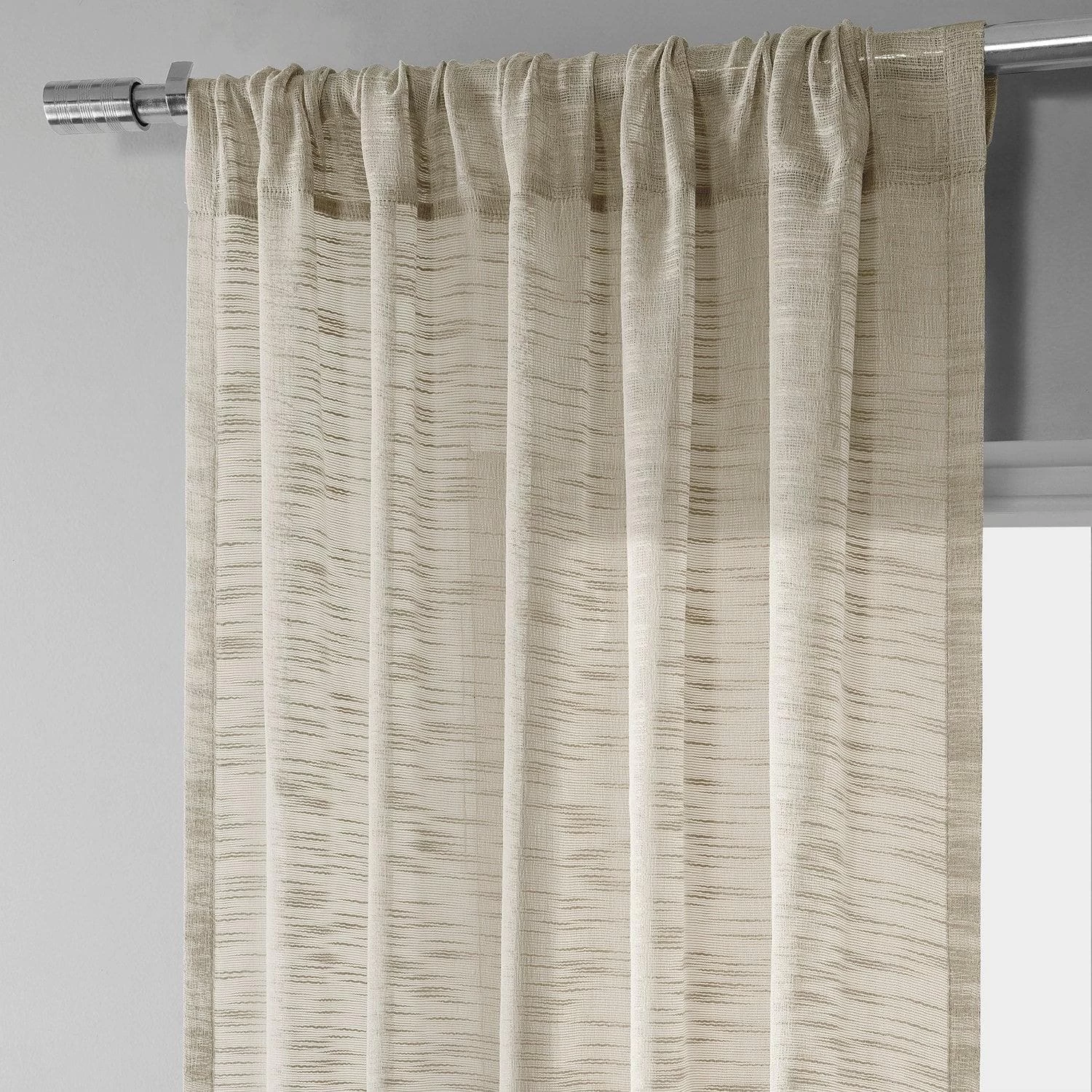 Camel Tan Faux Linen Sheer Curtain Pair (2 Panels)