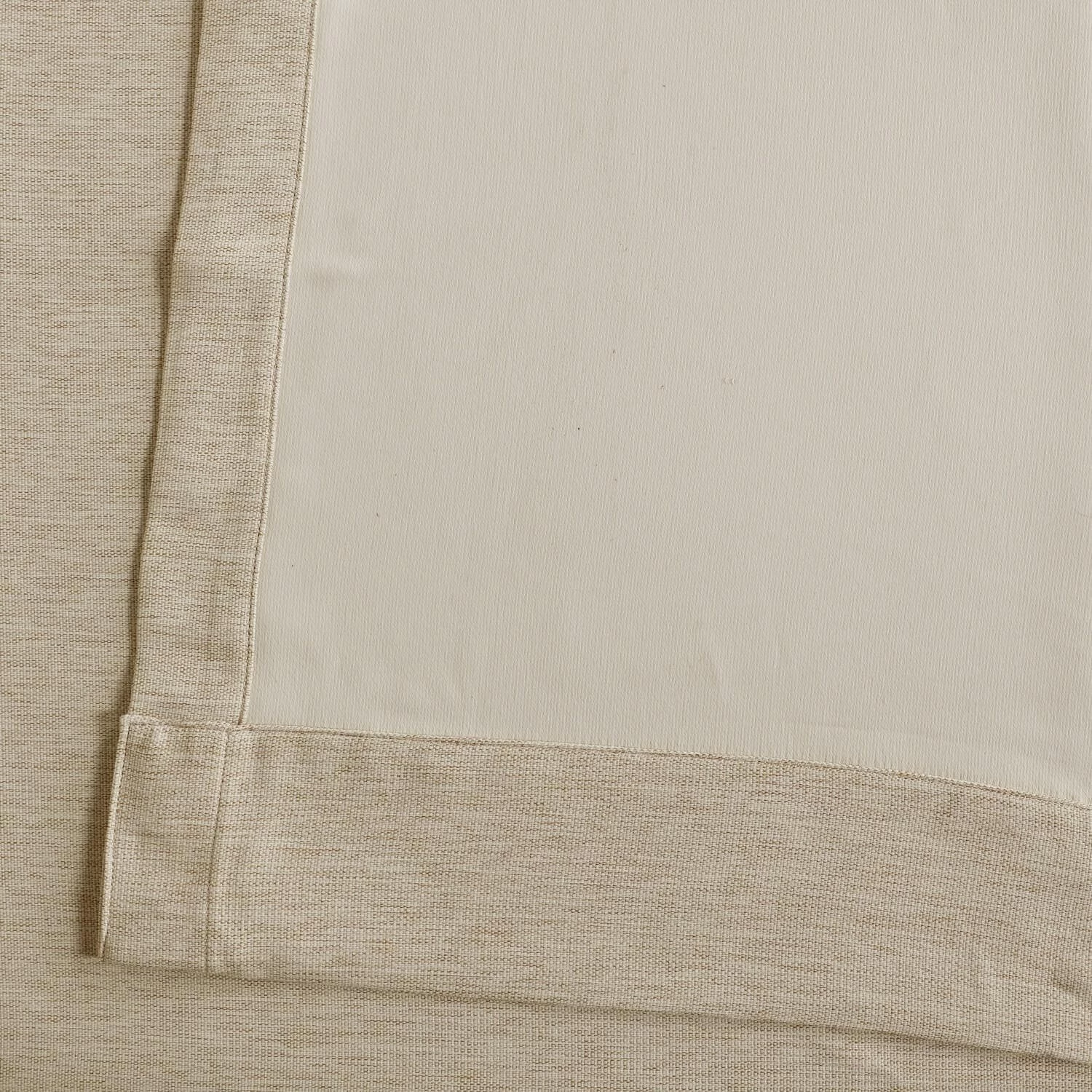 Candlelight has dashes of ivory and dark ivory tones. This textured curtain is unlined and backed with smooth off white fabric.