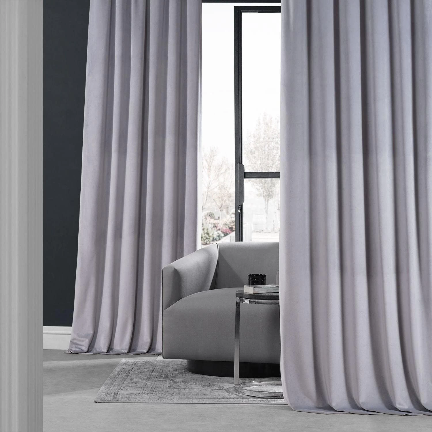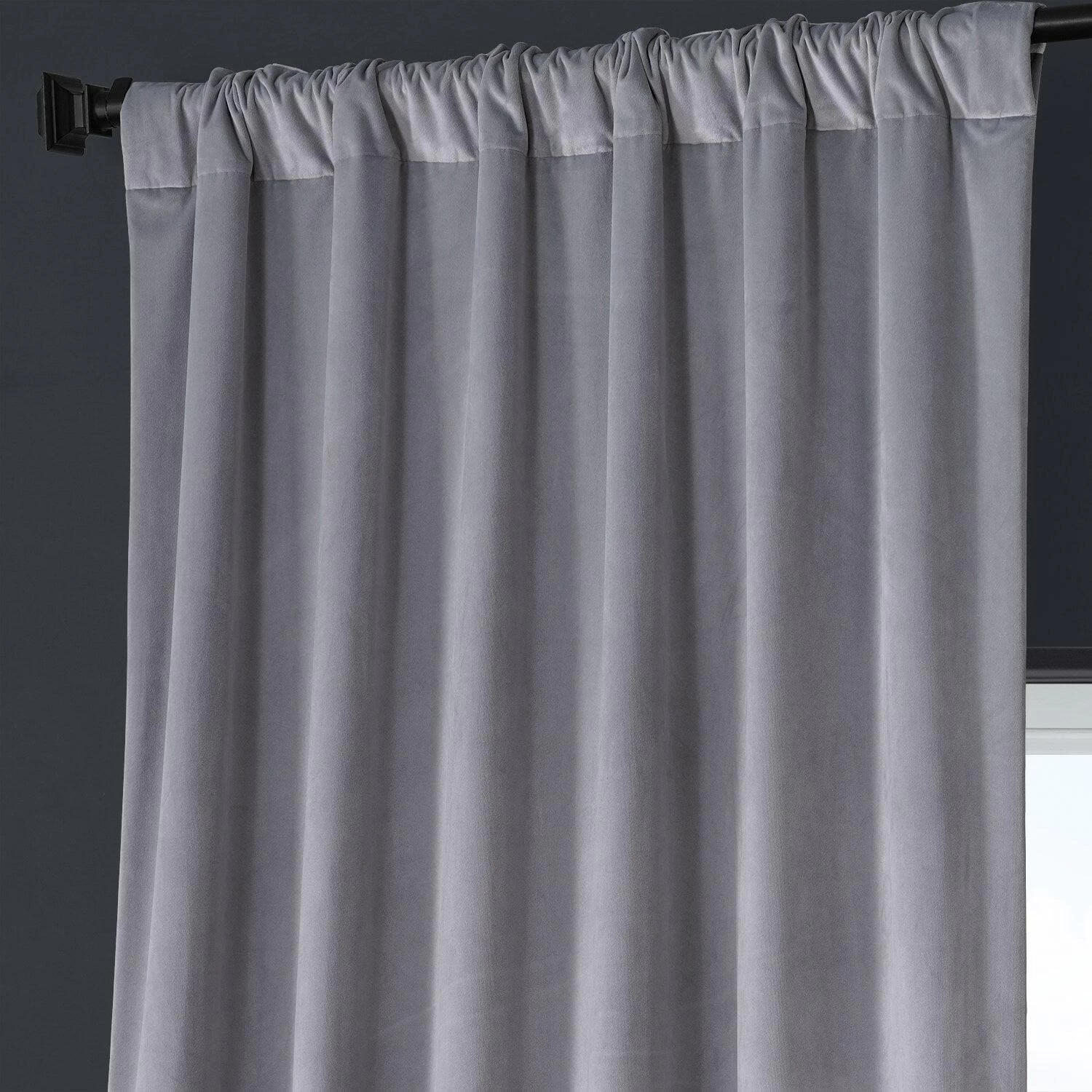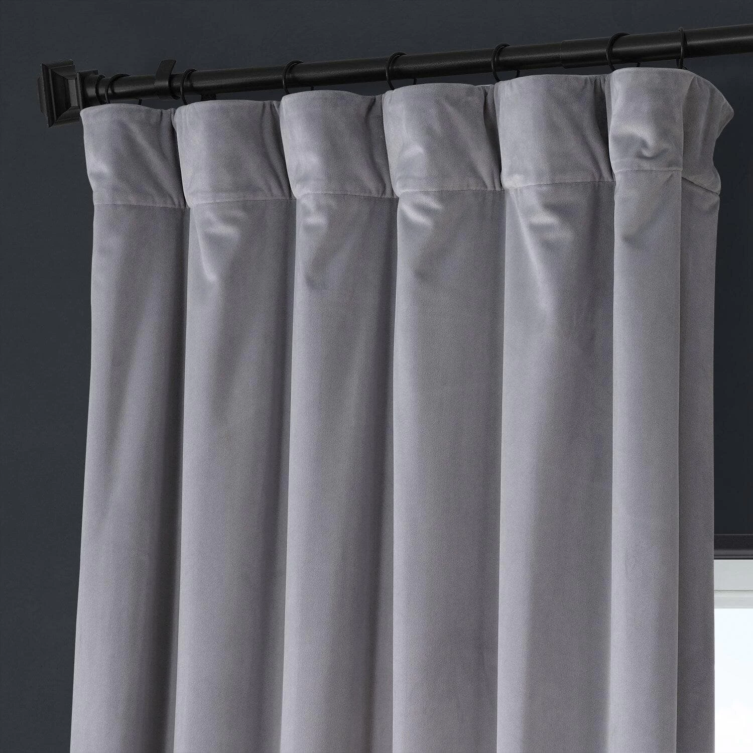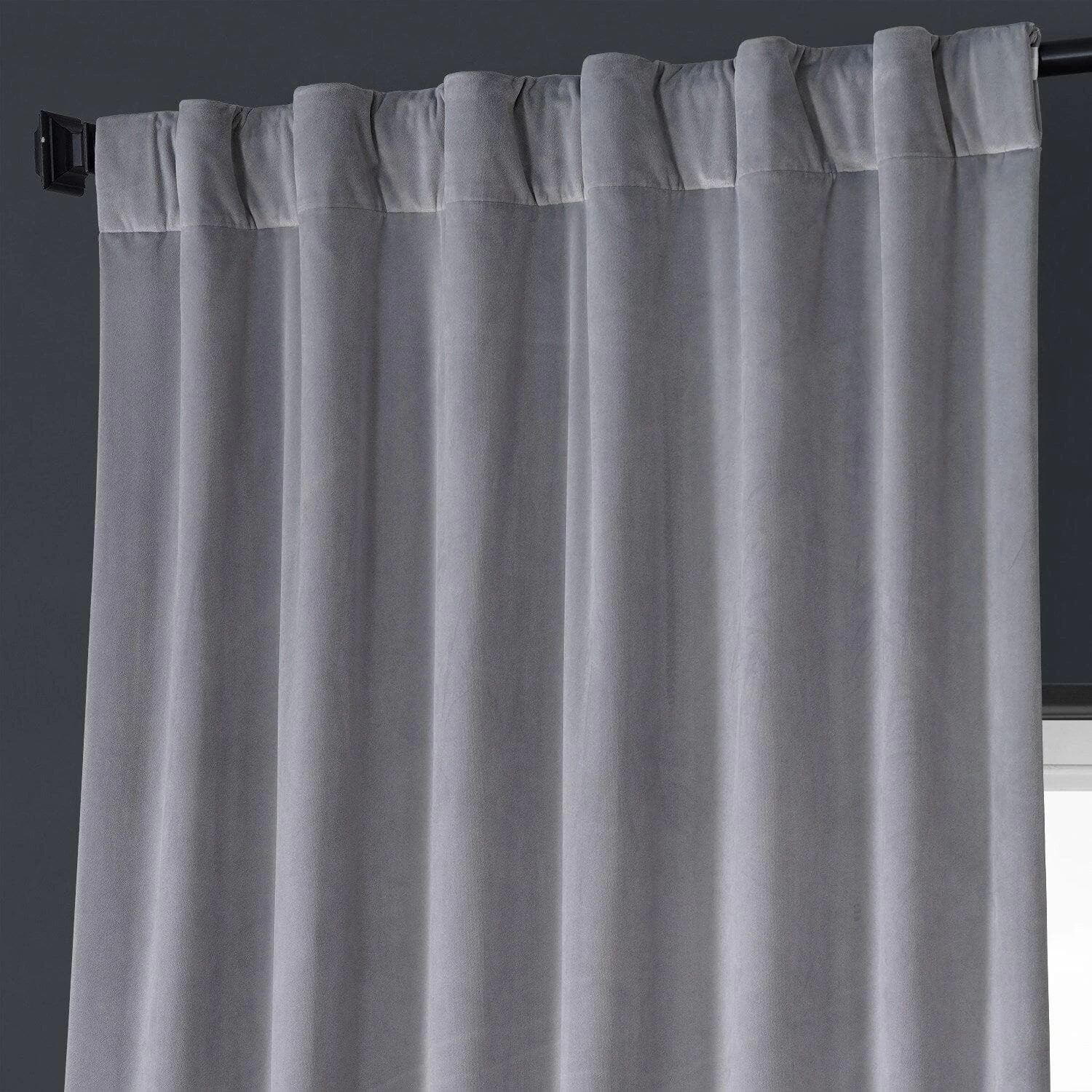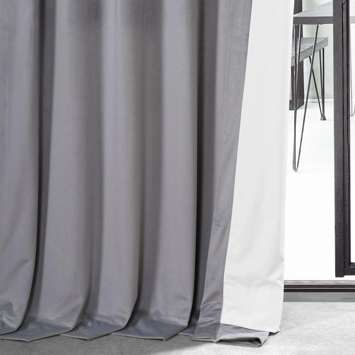 Royal Cascade Grey is a light silver grey. This luxe velvet curtain is lined with off white fabric.