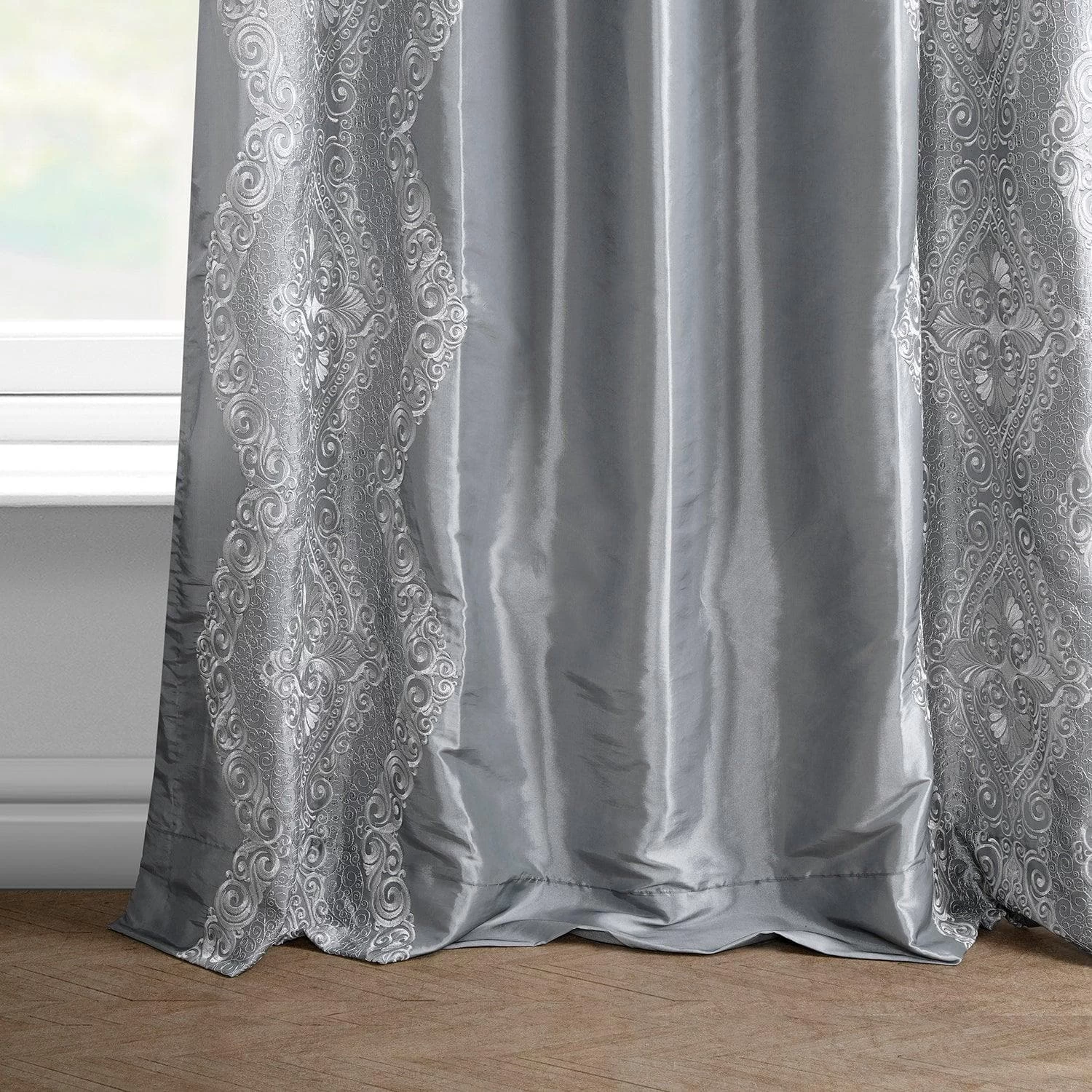 Chai Silver Embroidered Designer Faux Silk Curtain