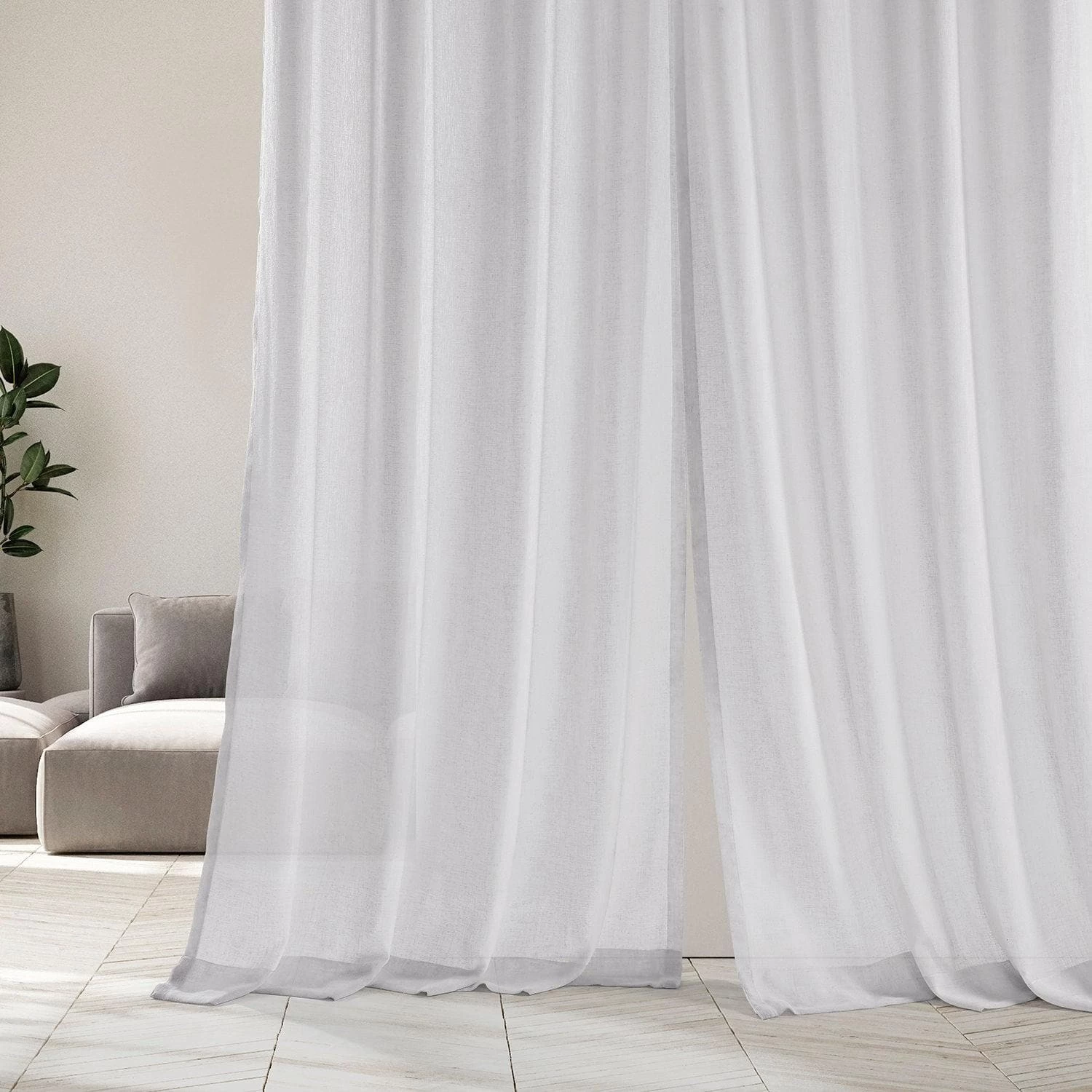 Cirro Off White Solid Linen Sheer Curtain Pair (2 Panels)