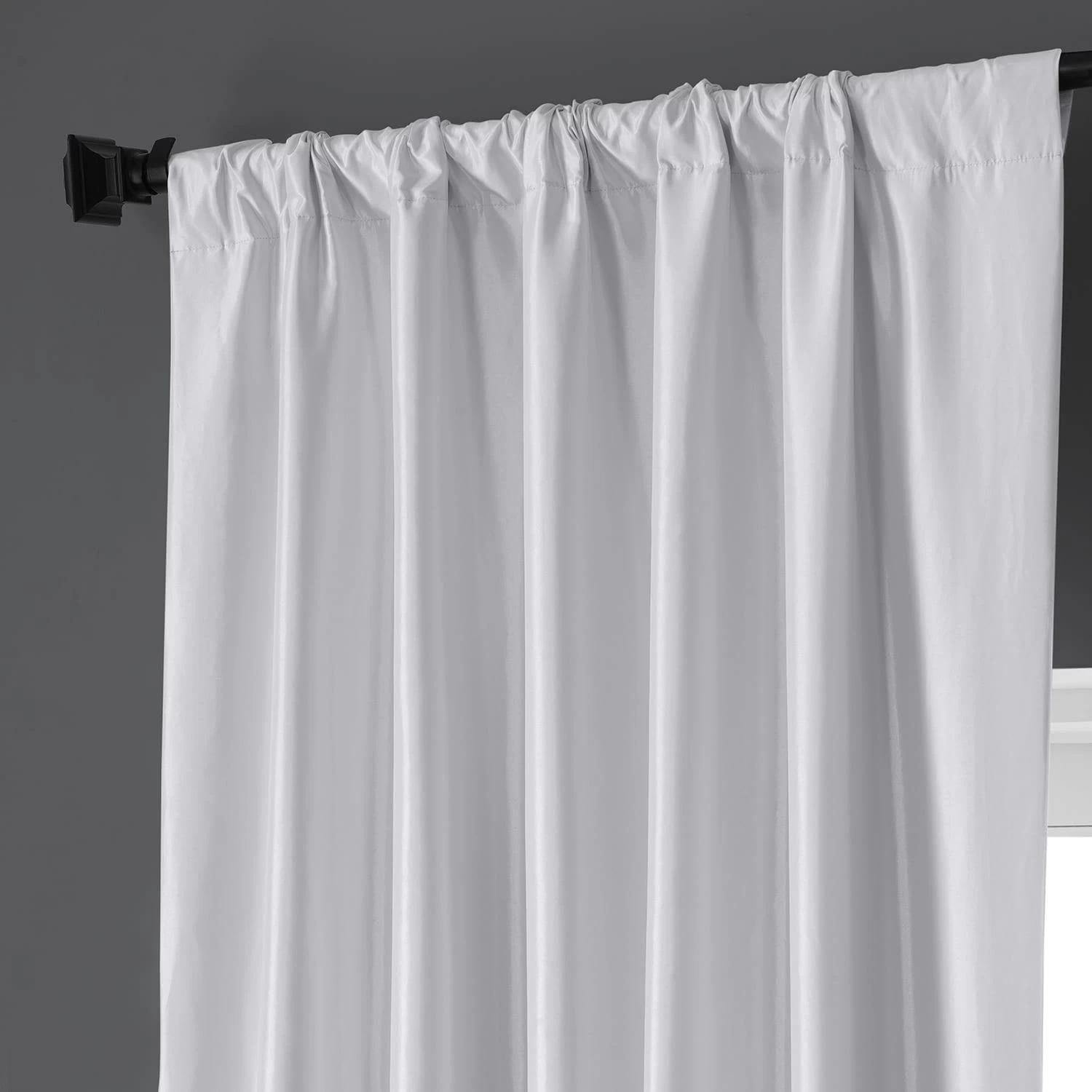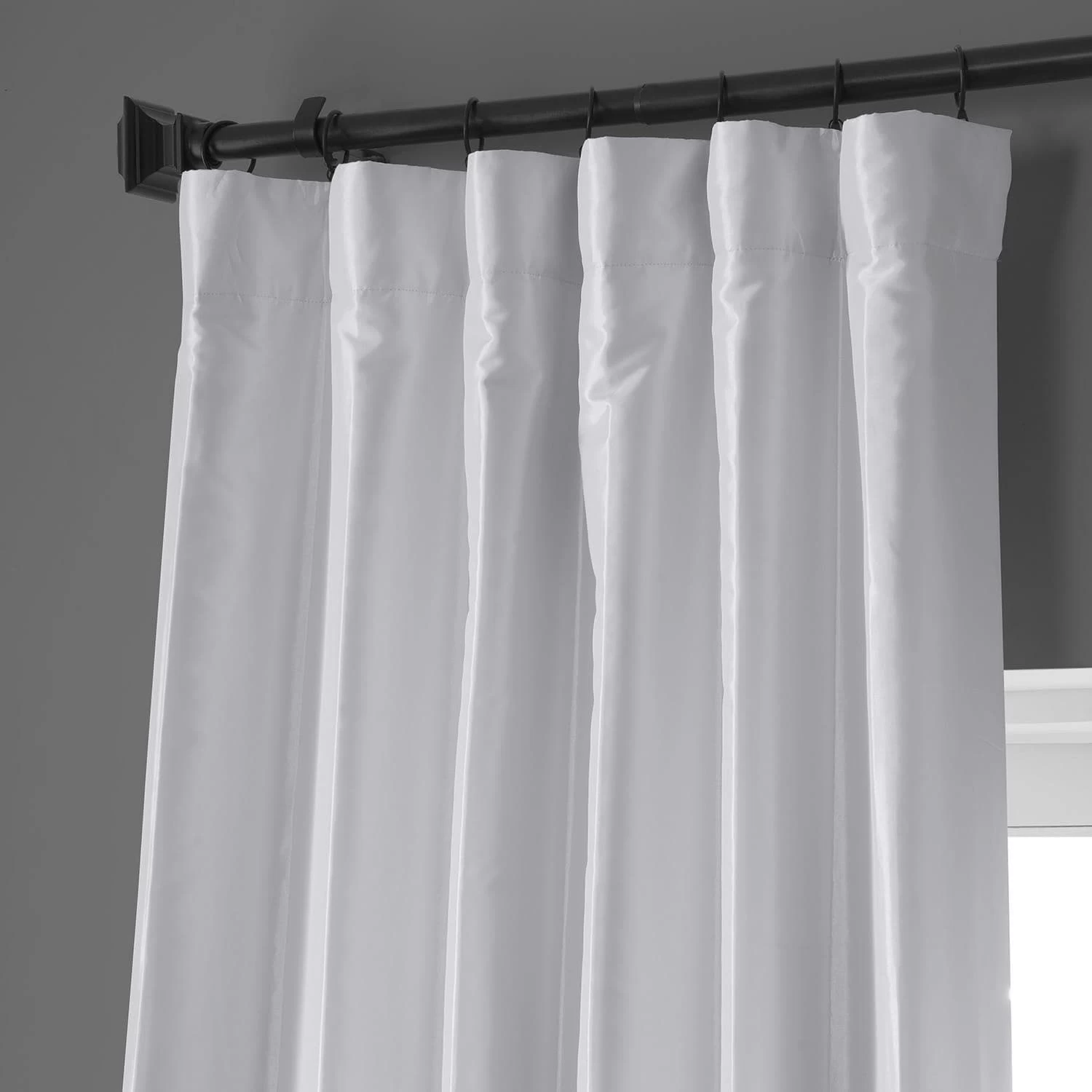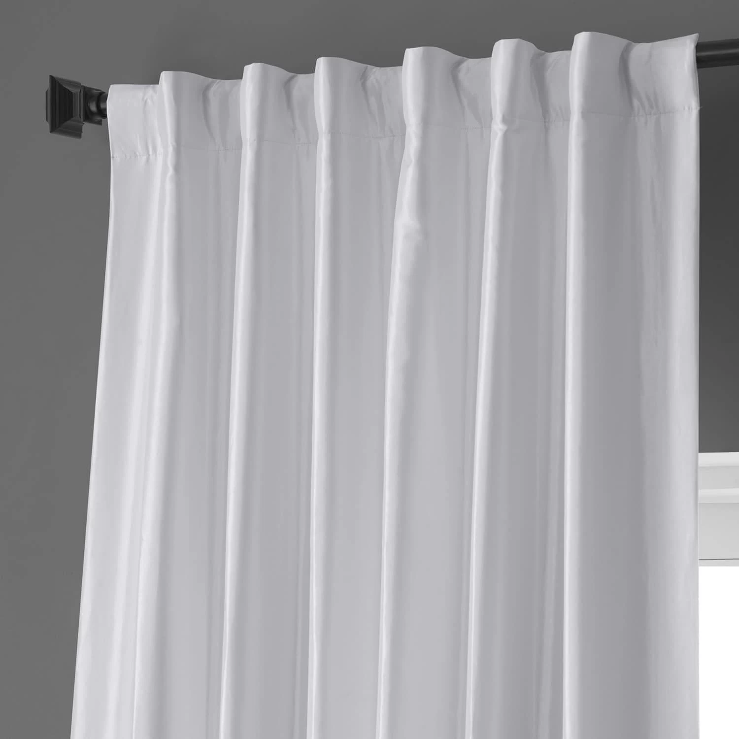 Clever Cream is an off white warm white. This taffeta curtain is lined with off white blackout fabric.