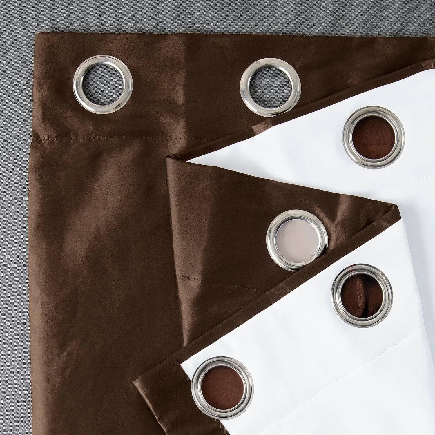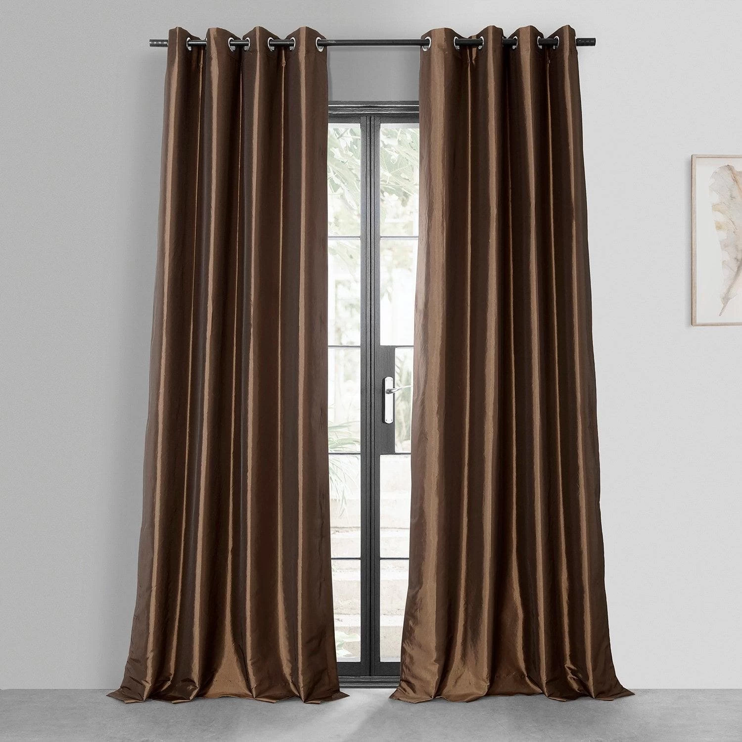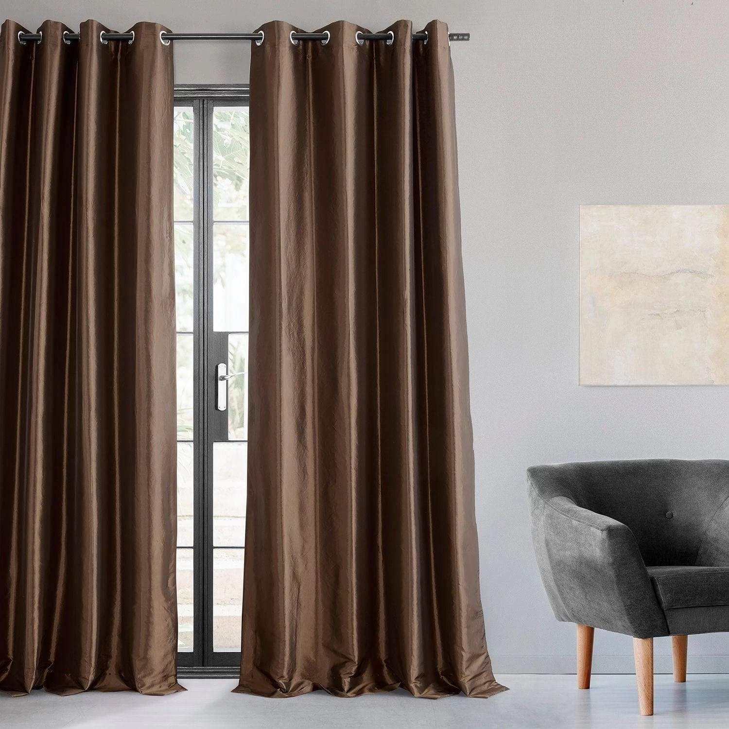 Copper Brown Grommet Faux Silk Taffeta Blackout Curtain