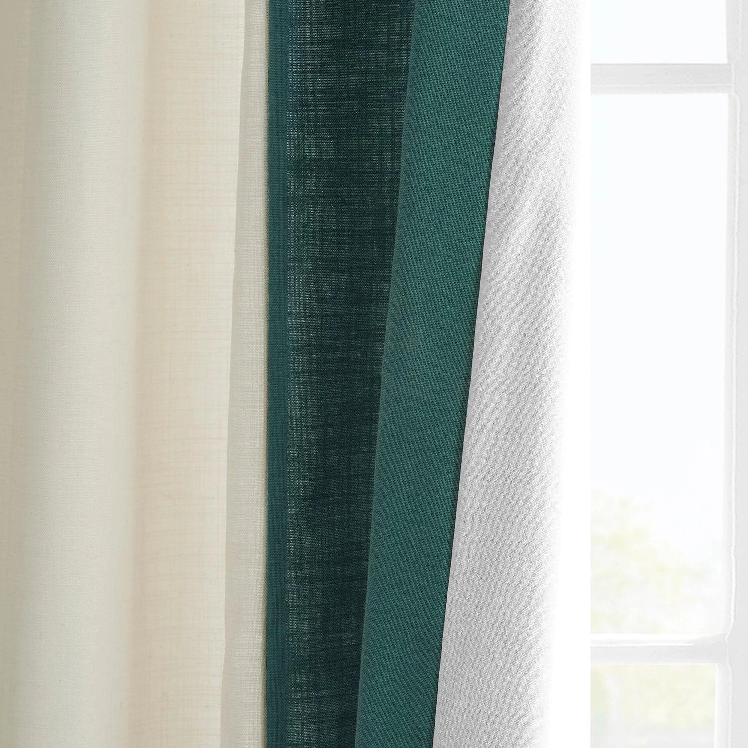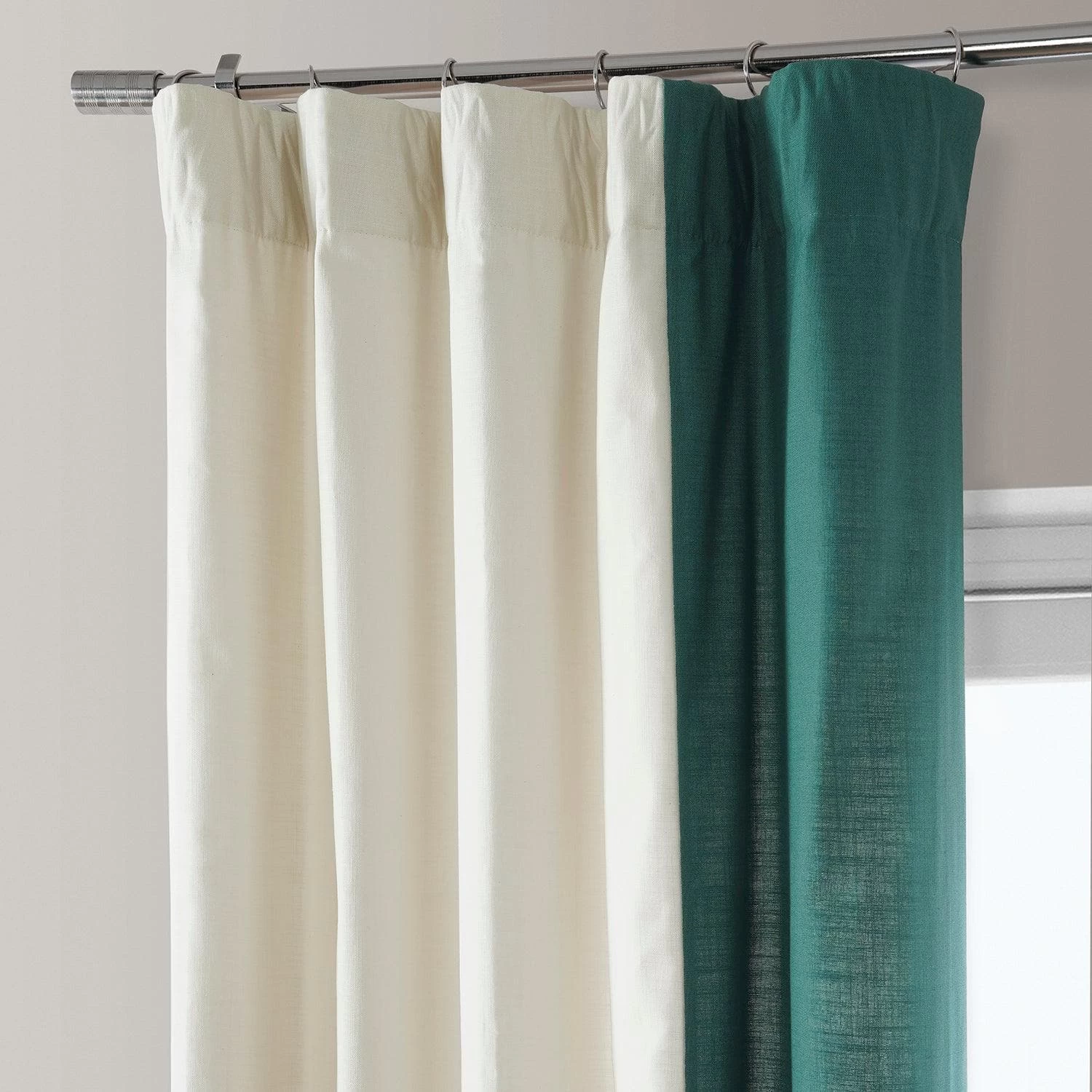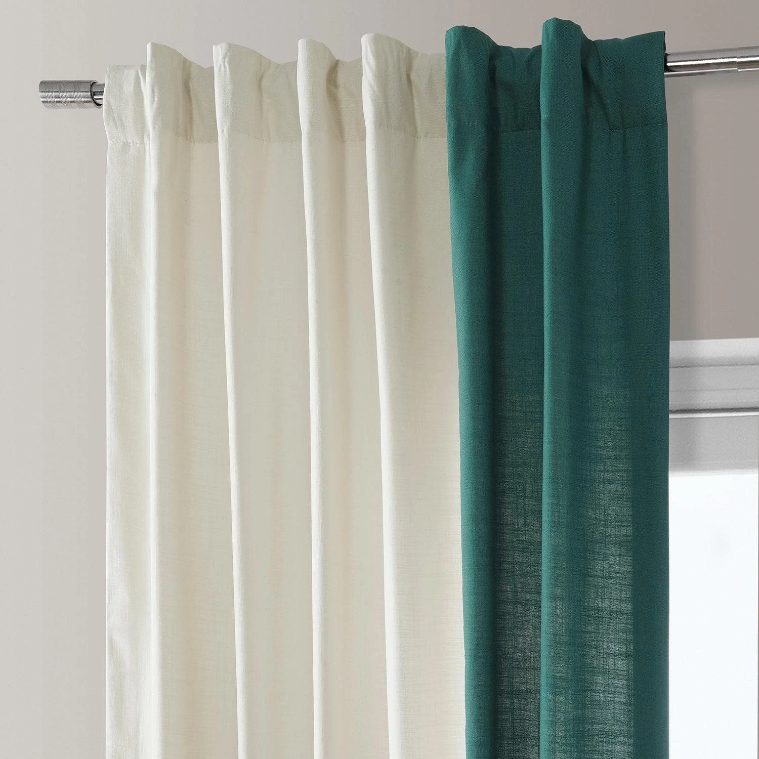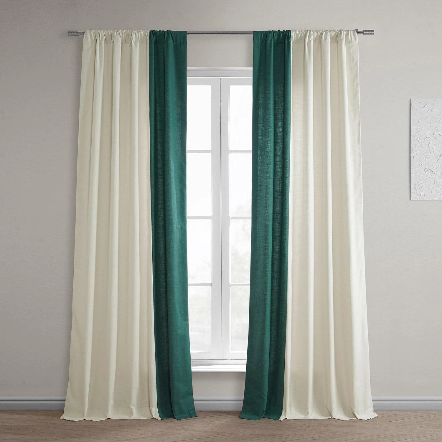 Made To Order: A wide teal green border trims our cream cotton curtain. This Bold Border Dune Texture 100% Cotton Curtain is lined with off-white cotton fabric.