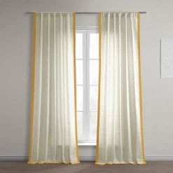Made To Order: A thin ochre Bordered frames three sides of our cream cotton curtain. This Thin Frame Bordered Dune Textured 100% Cotton Curtain is unlined and has no backing.