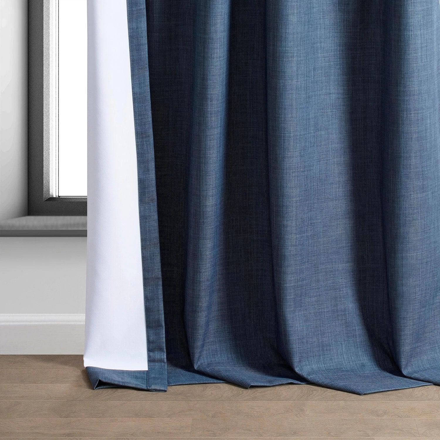 Dark Blue Performance Linen Hotel Blackout Curtain