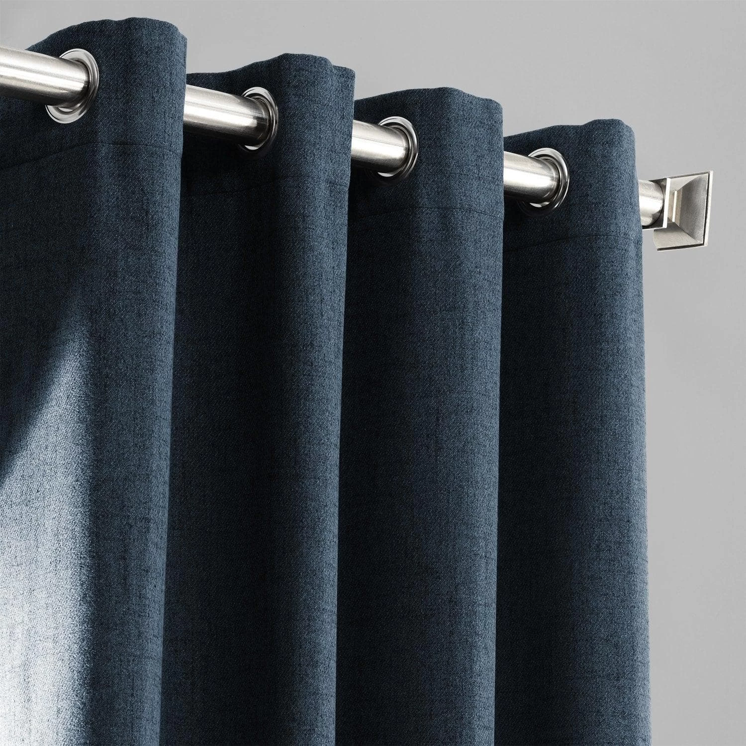 Dark Denim Blue Grommet Heathered Woolen Weave Curtain
