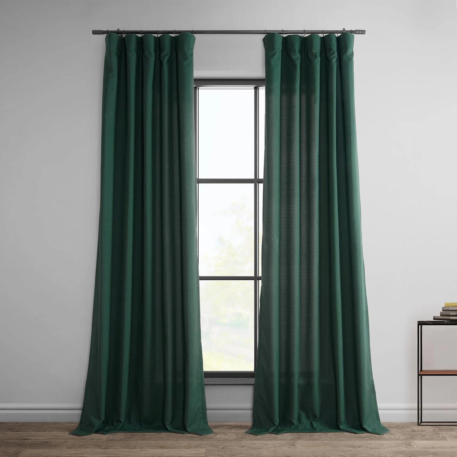 Deep Green is rich deep green dobby weave. This textured linen linen curtain is unlined and has no backing.