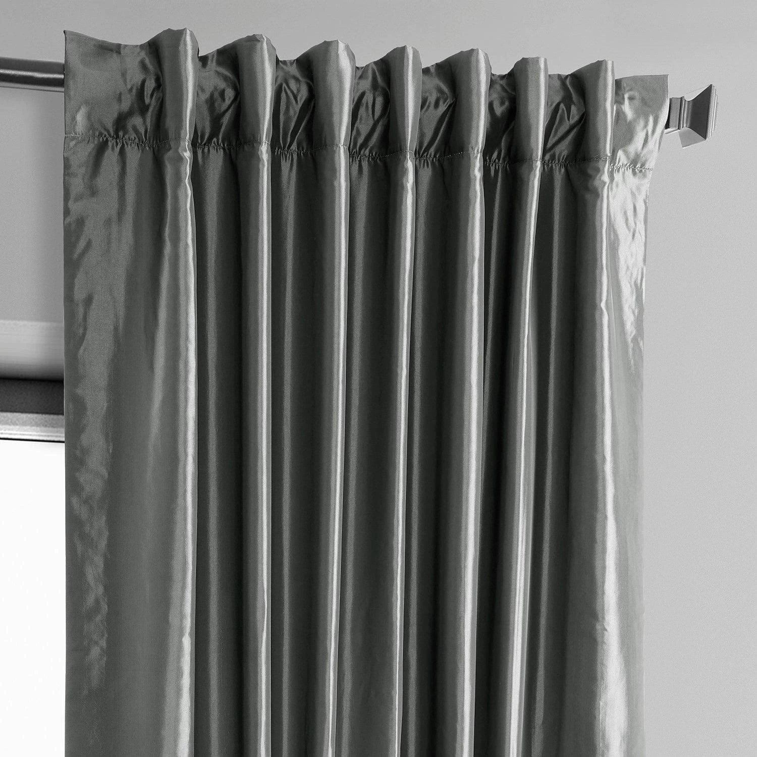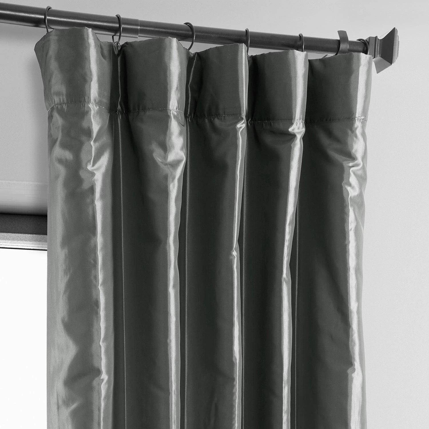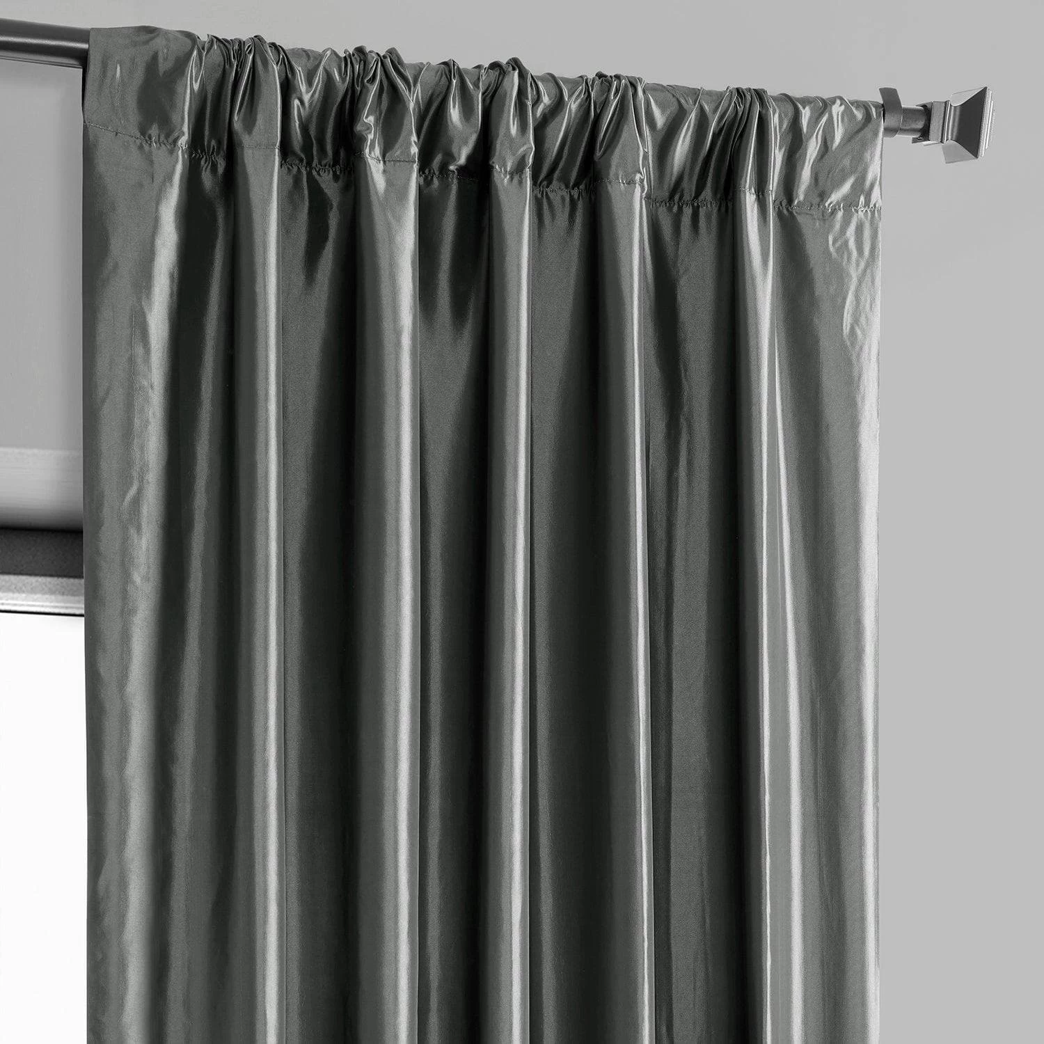 Deep Grey Solid Faux Silk Taffeta Room Darkening Curtain Pair (2 Panels)