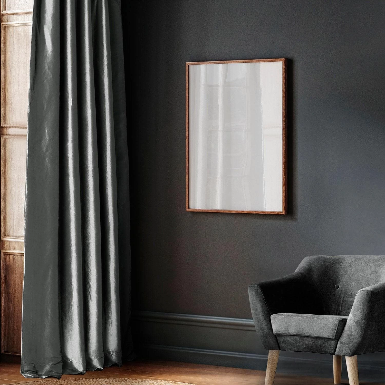 Deep Grey is a lustrous deep charcoal grey. This taffeta curtain is lined with off white fabric.
