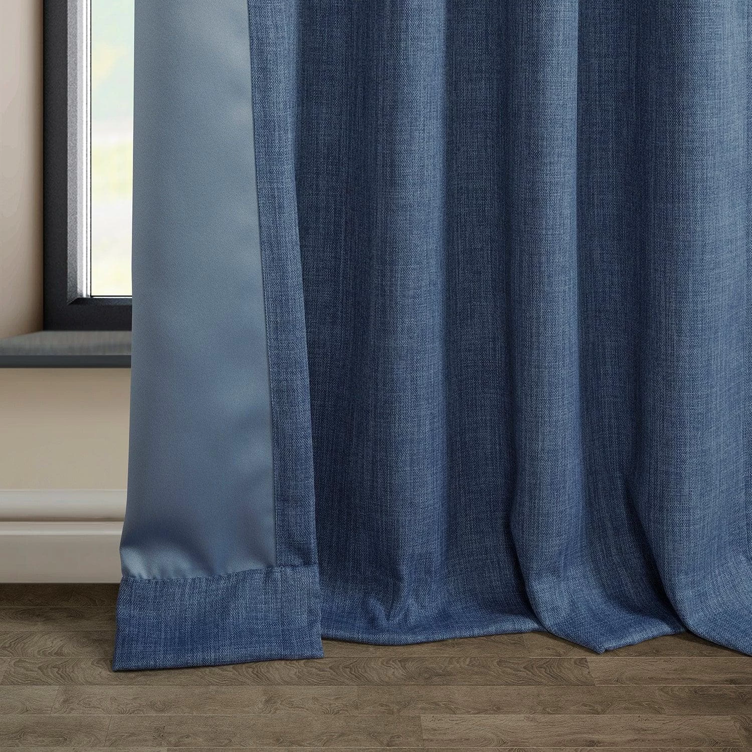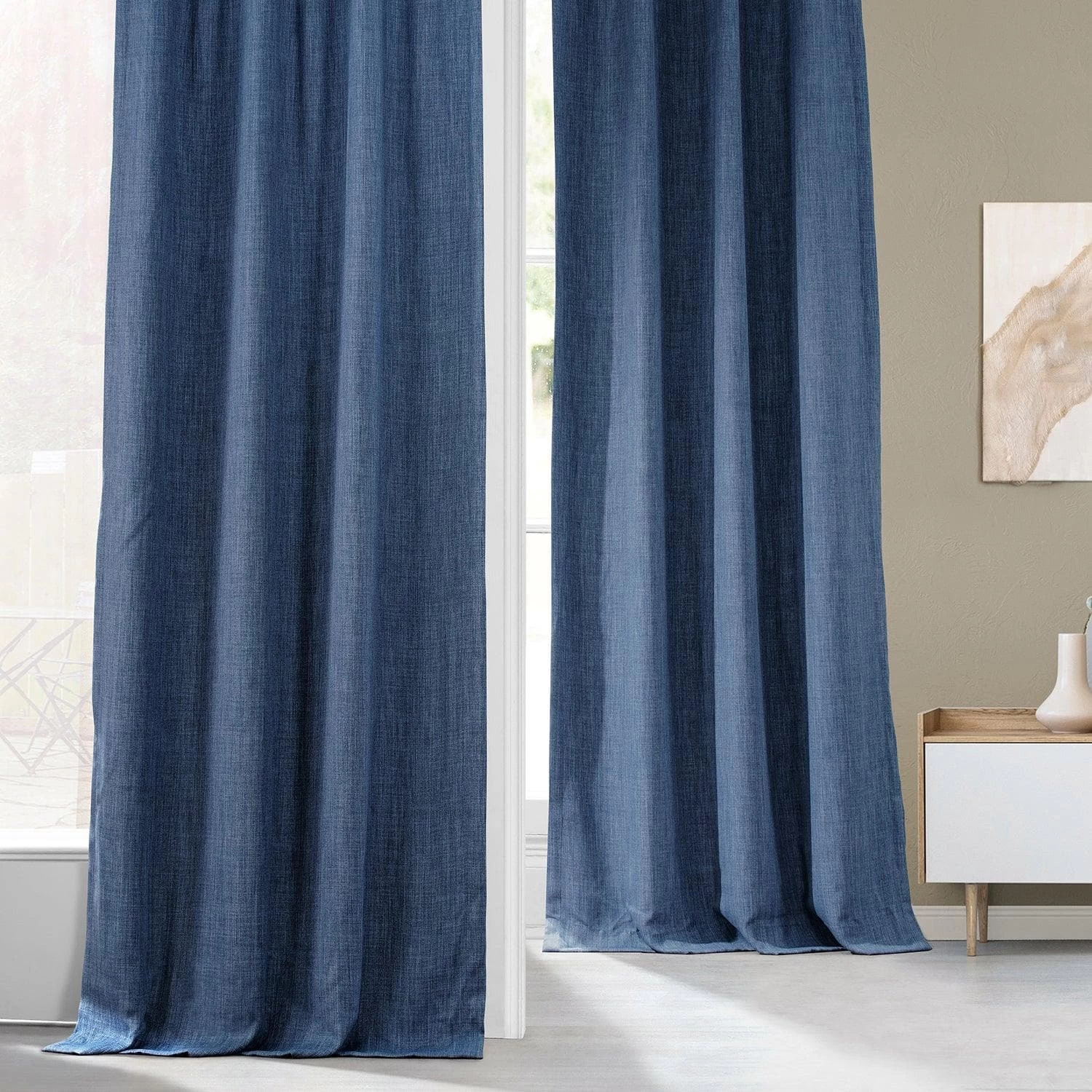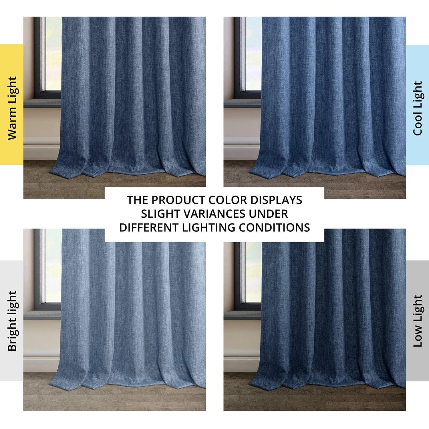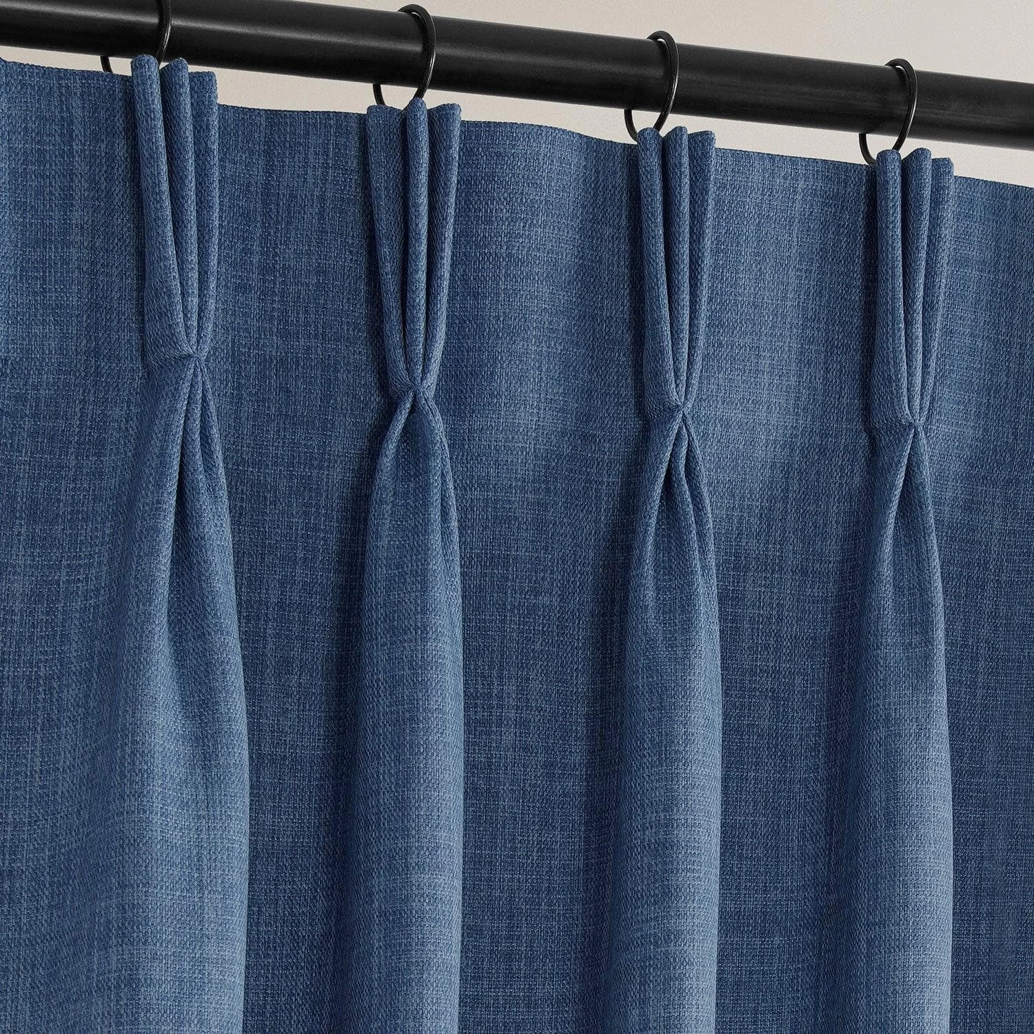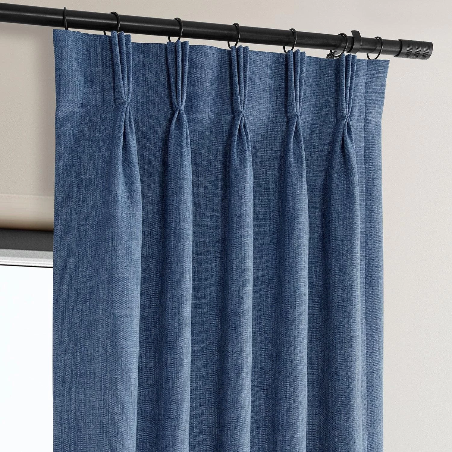 Denim French Pleat Textured Faux Linen Room Darkening Curtain