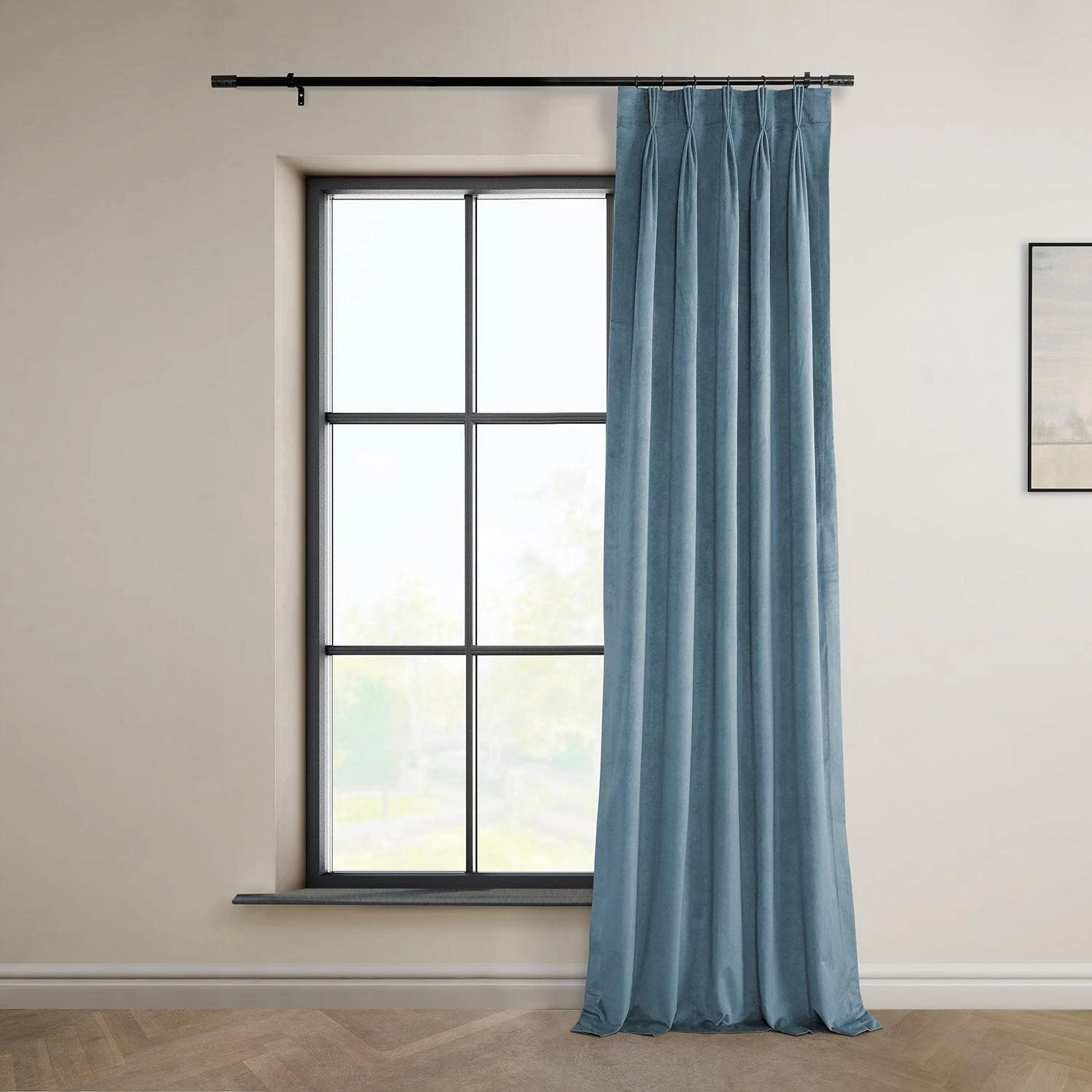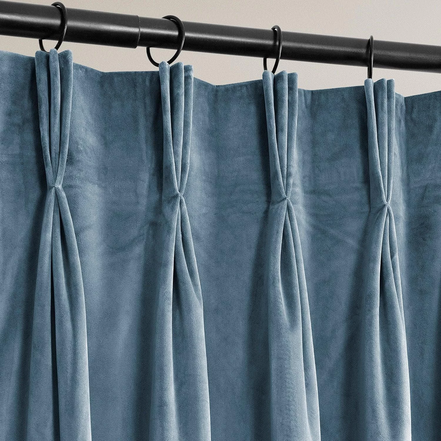 Denmark Blue French Pleat Heritage Plush Velvet Curtain