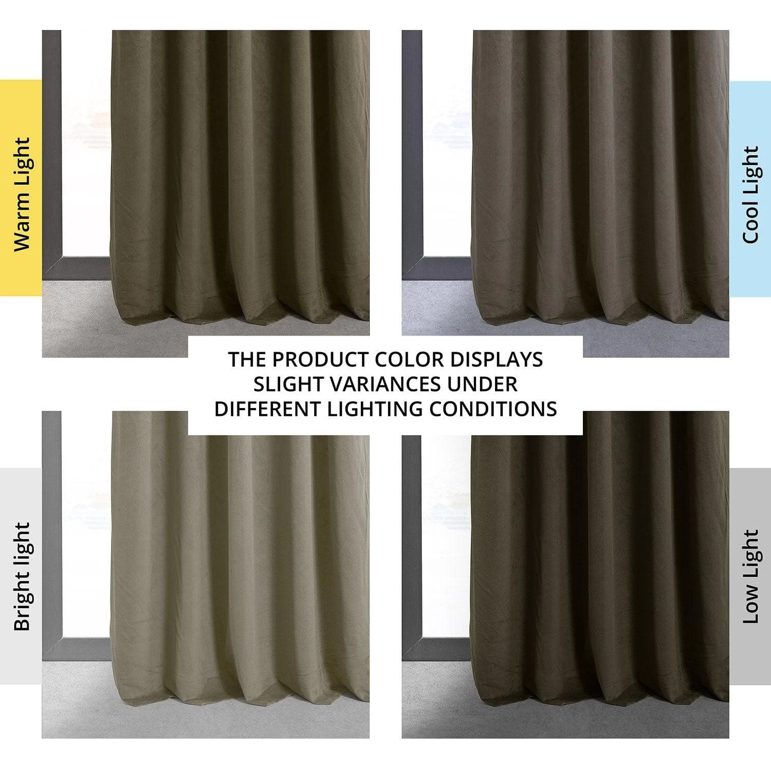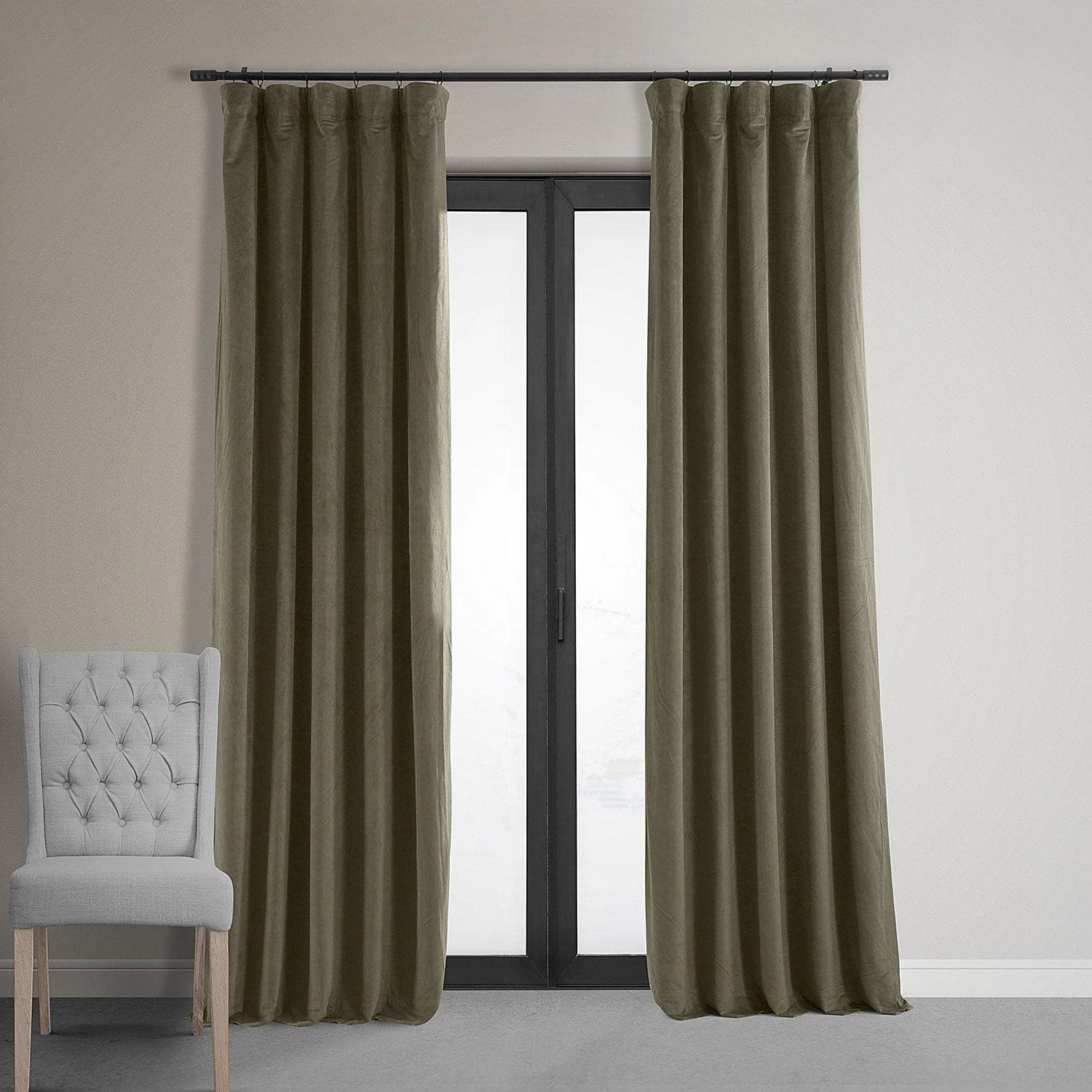 Denver Taupe is a hazelwood-tinted taupe. This luxurious velvet curtain is lined with off white thermal fabric.