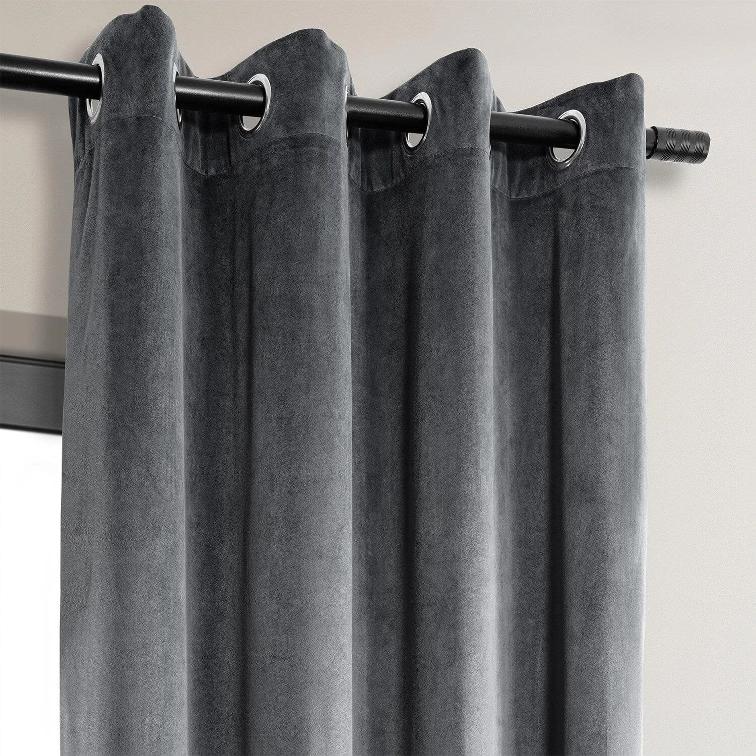 Distance Blue Grey Grommet Signature Velvet Blackout Curtain