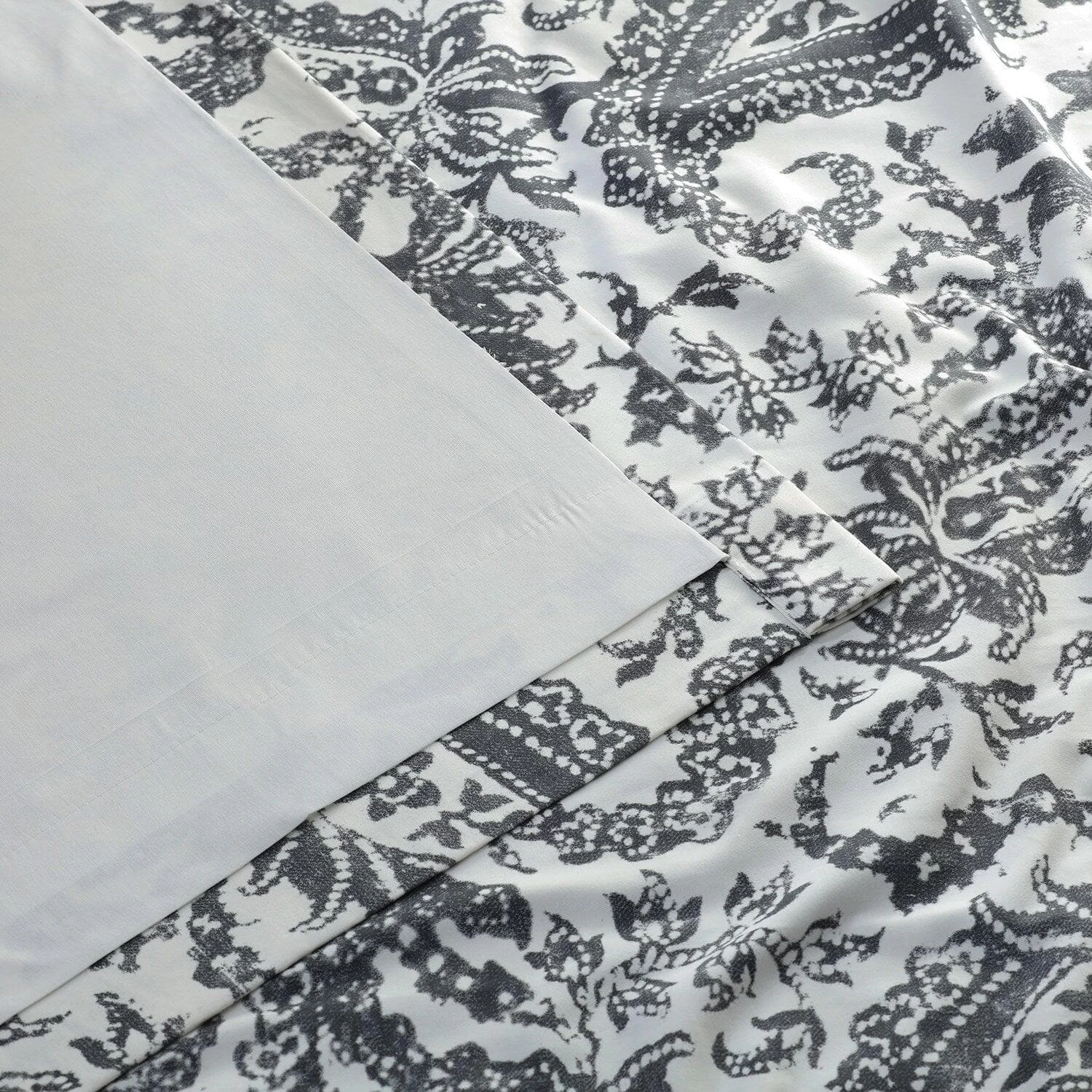 Edina Grey is a metal grey paisley print on an off white background. This 100% cotton twill curtain is lined with off white fabric.