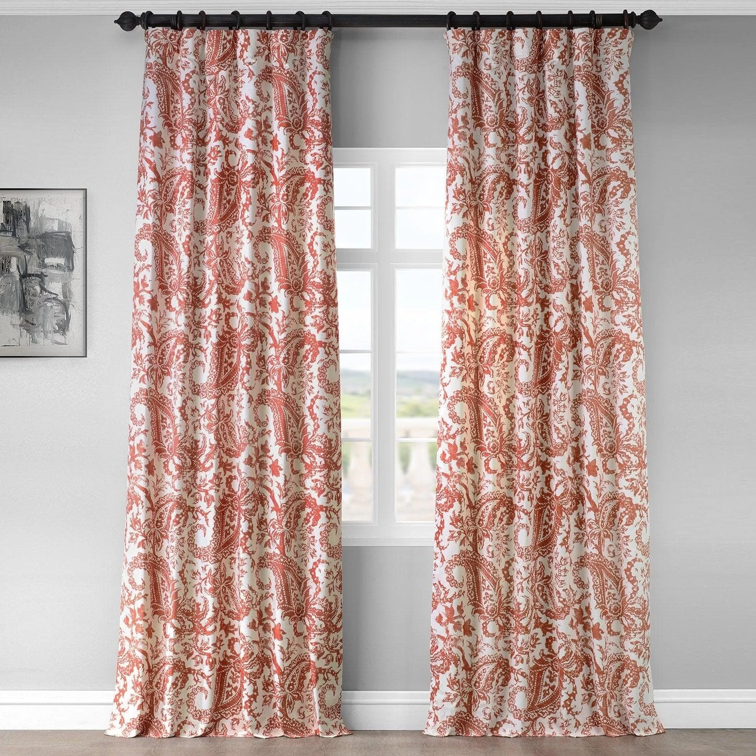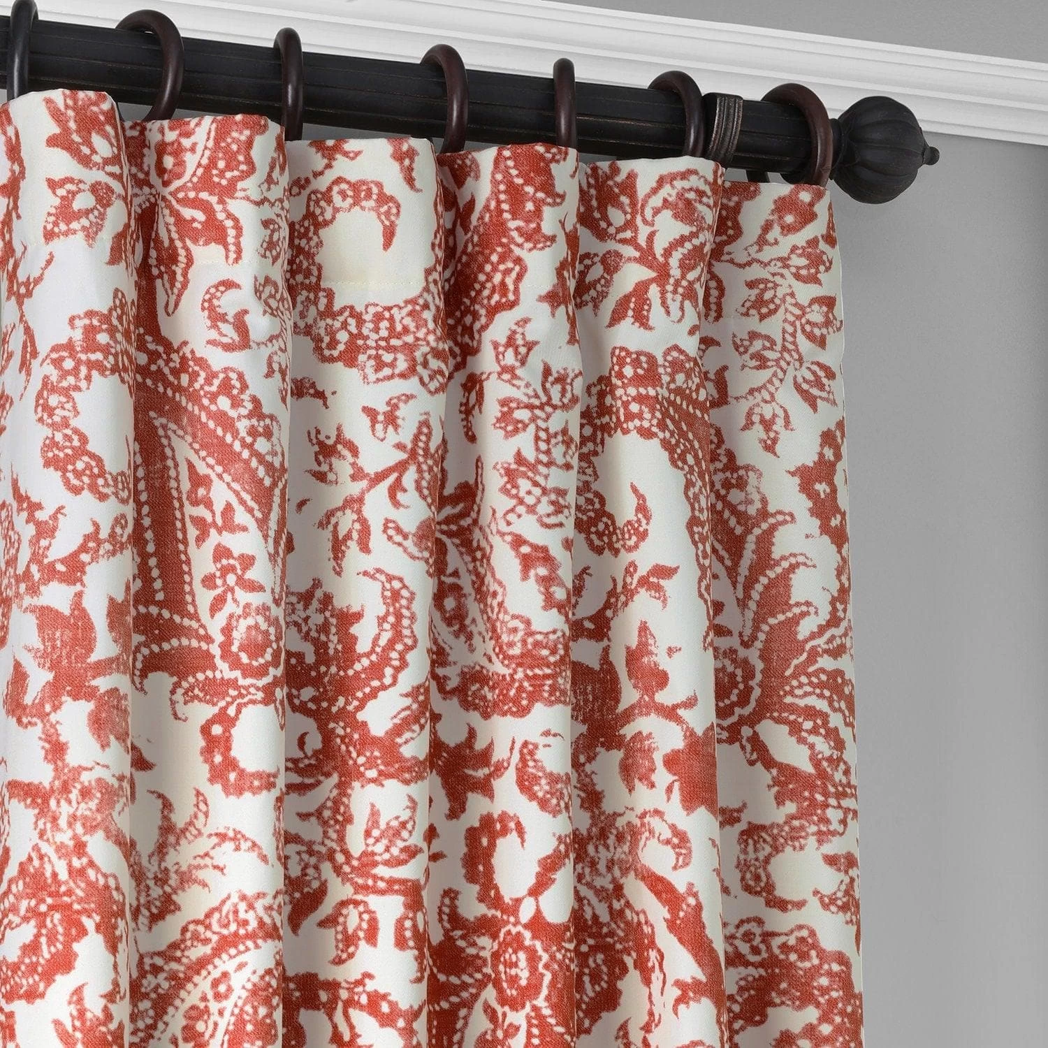 Edina Rust is a rusty red paisley print on an off white background. This 100% cotton twill curtain is lined with off white fabric.