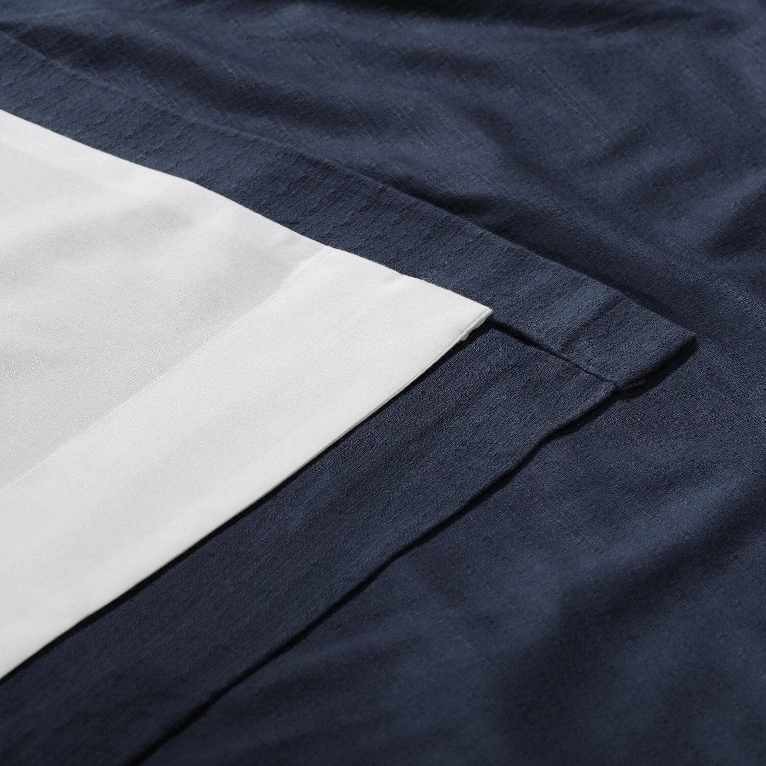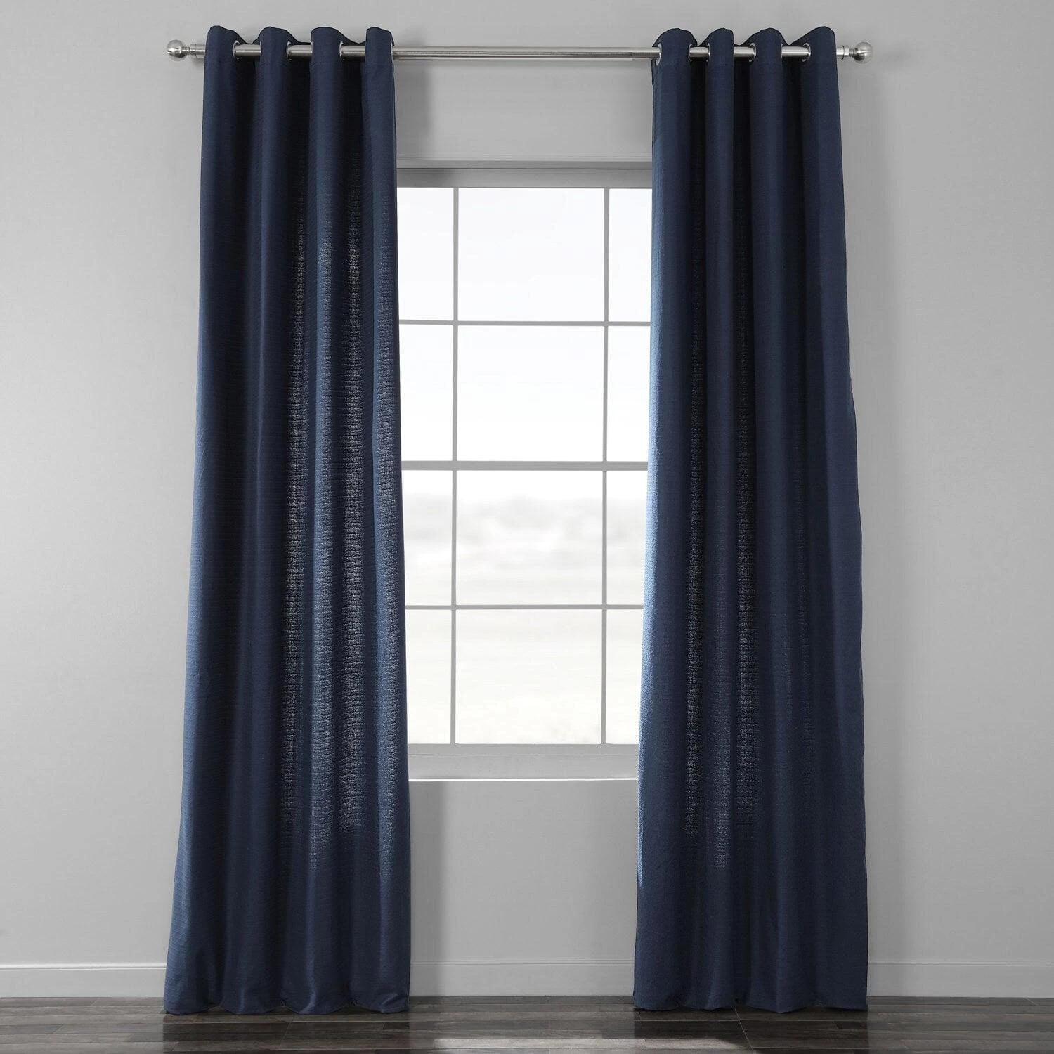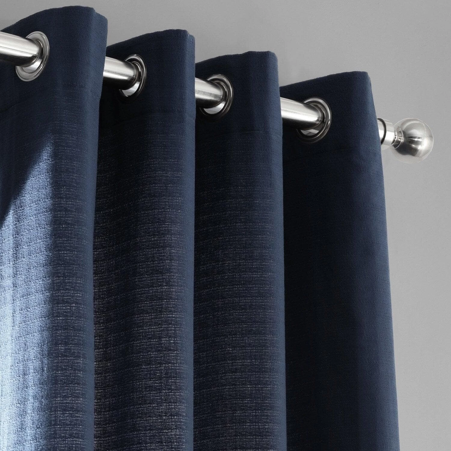 Elegant Navy Grommet Textured Cotton Bark Weave Curtain