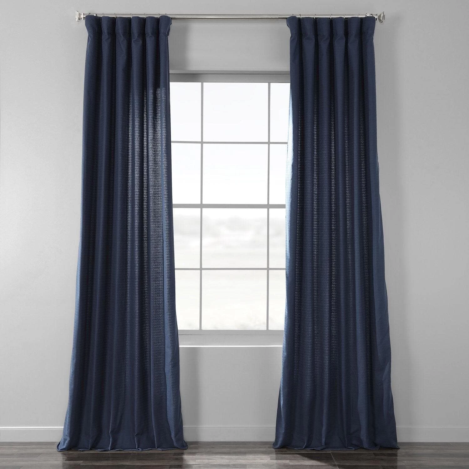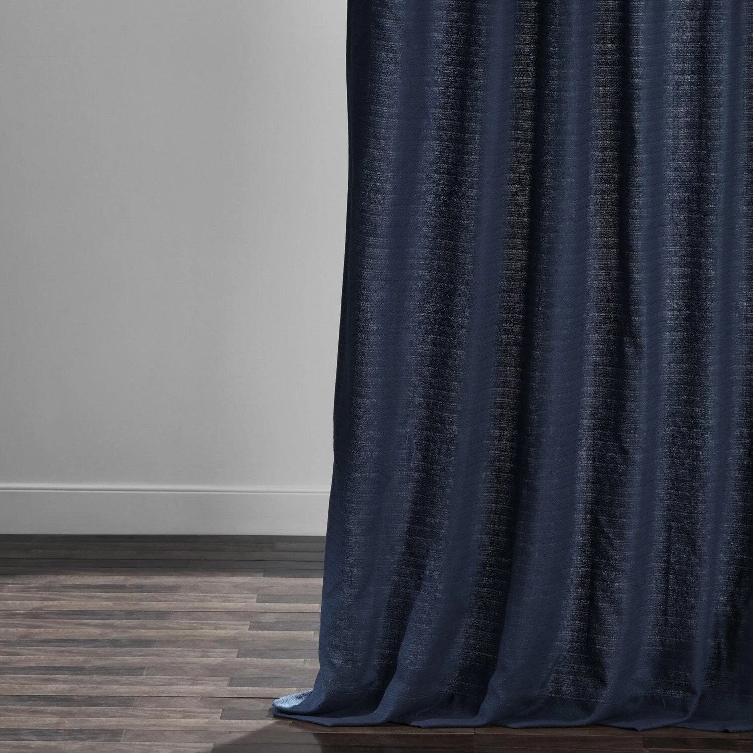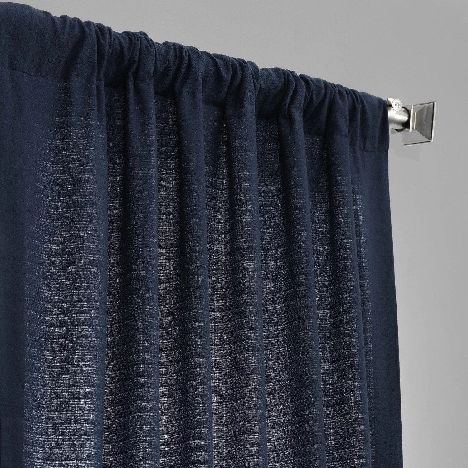 Elegant Navy Textured Cotton Bark Weave Curtain