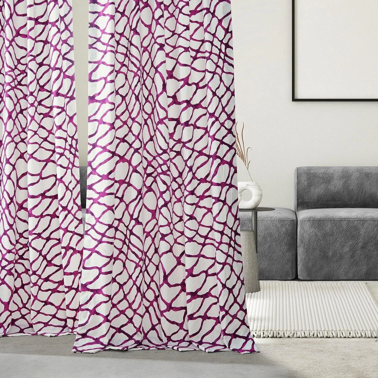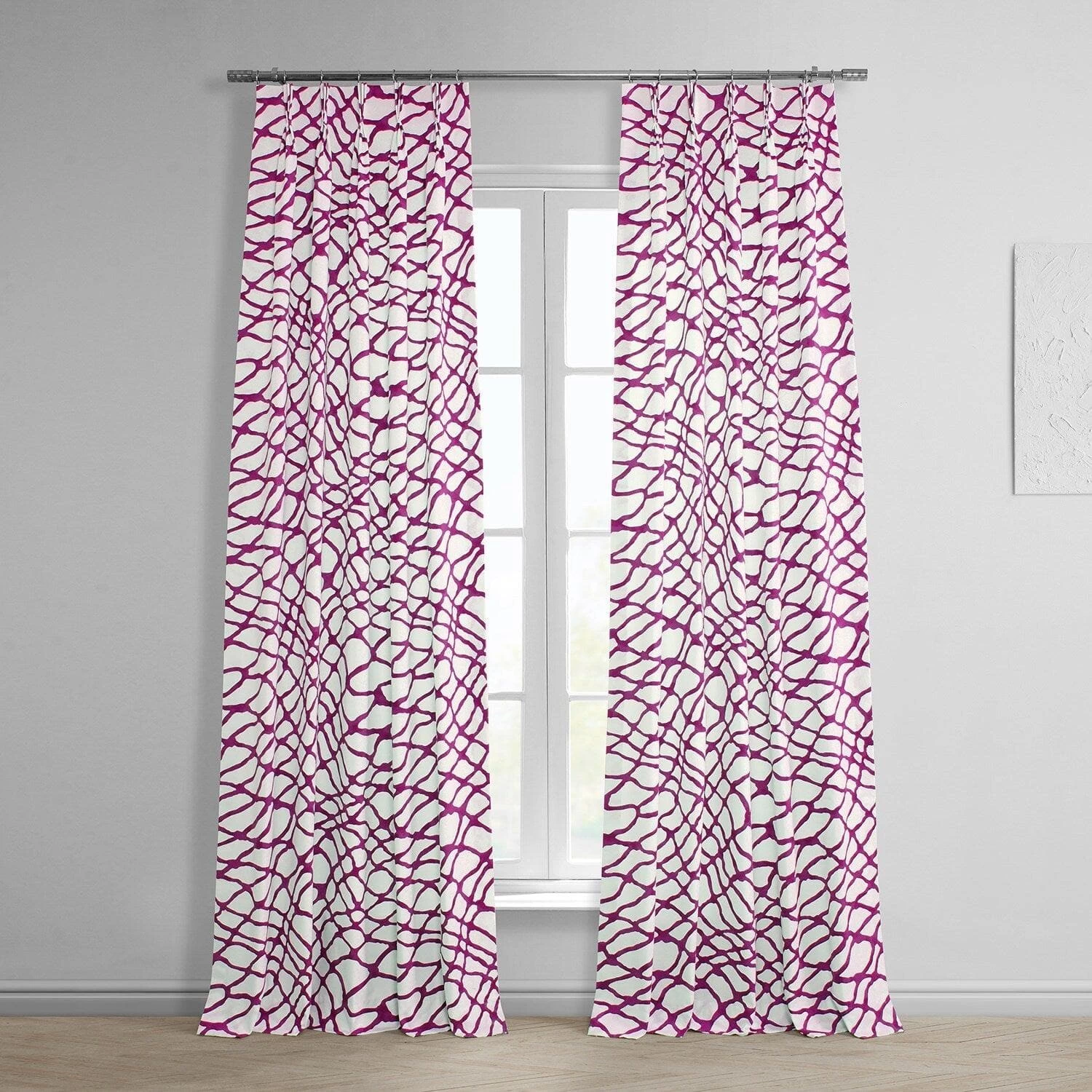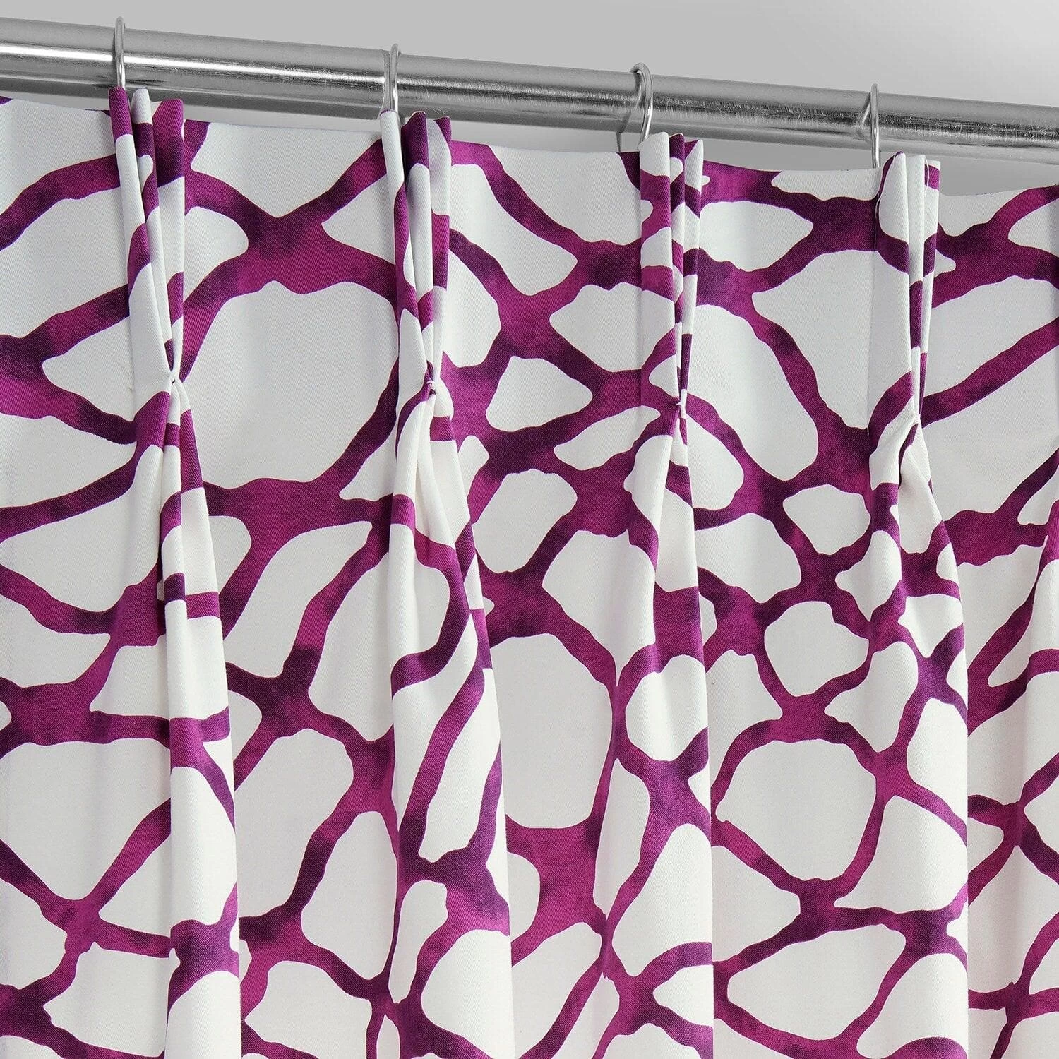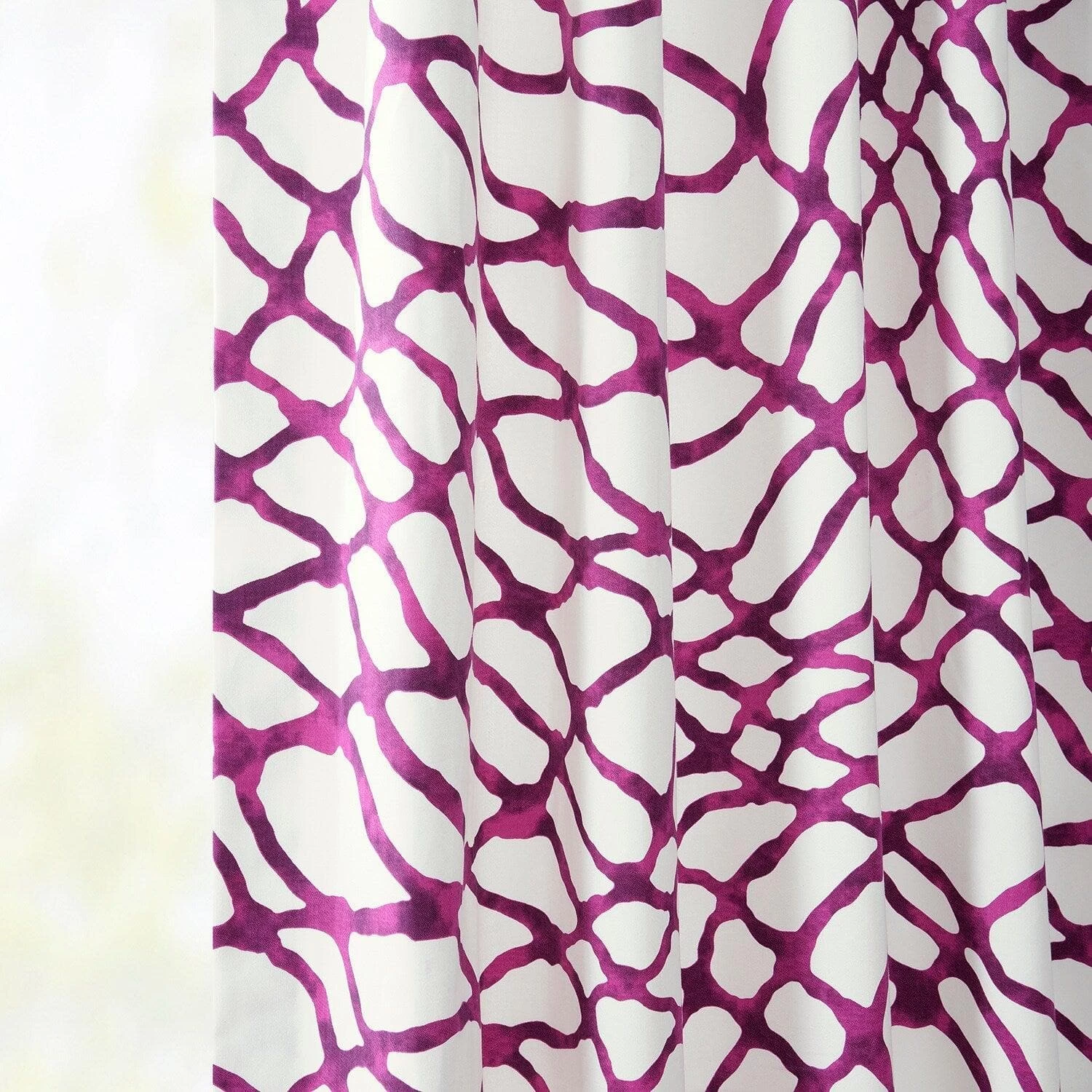 Made To Order: Ellis Pink is a pleated free-flowing watery bold dark pink print. This 100% cotton twill curtain is lined with off white fabric.