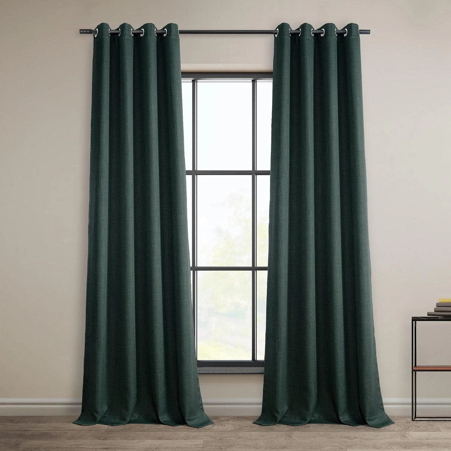 Focal Green Grommet Textured Faux Linen Room Darkening Curtain