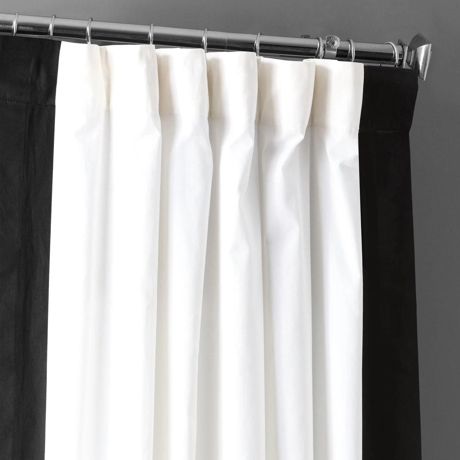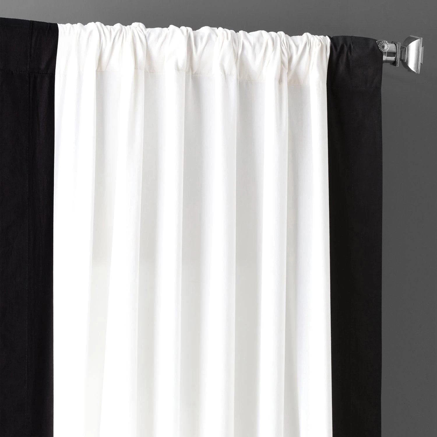 Fresh Popcorn & Black is a buttery off white and black verticle stripe. This 100% cotton curtain is unlined and has no backing.