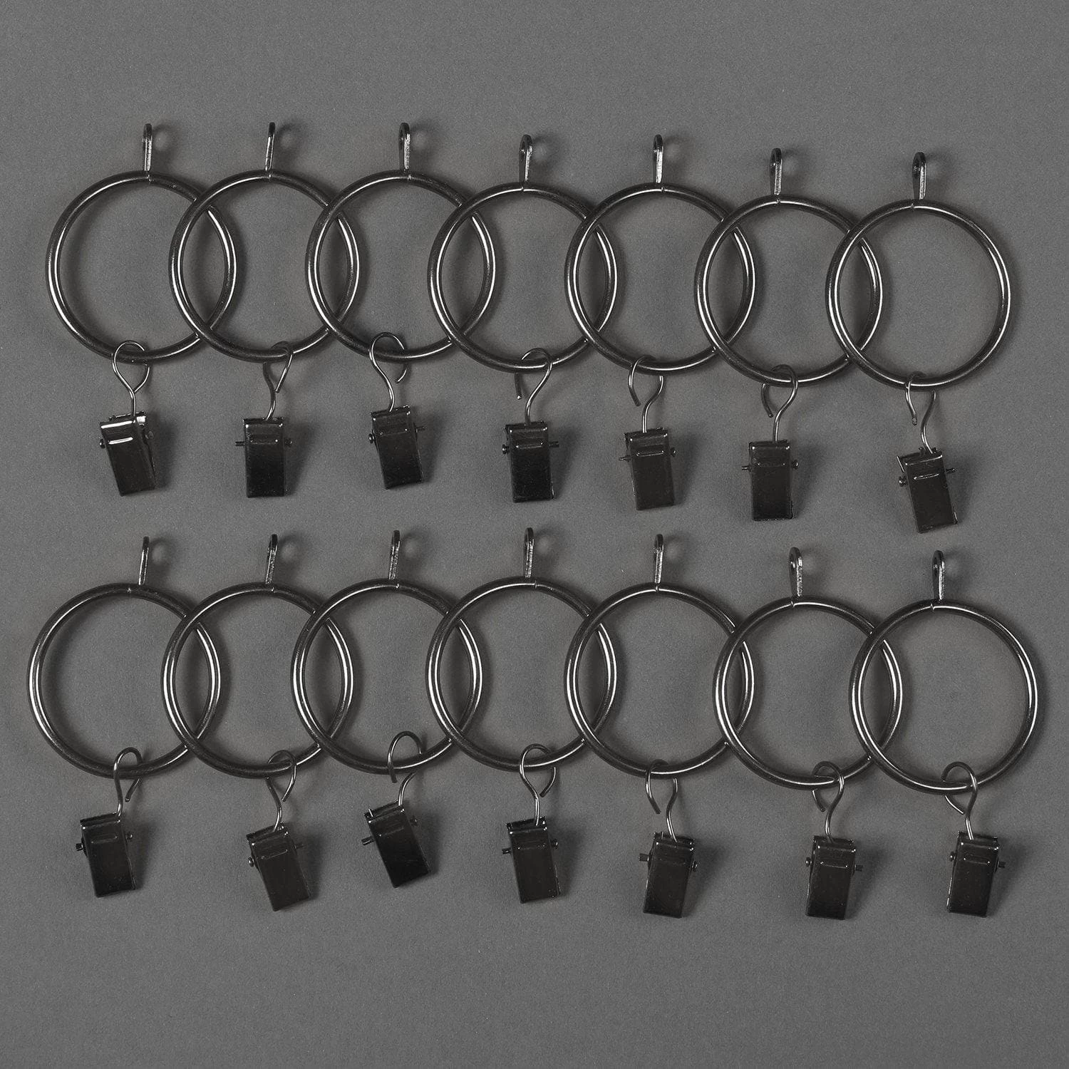 Our versatile metal rings can be used with drapery pins (not included) or with the included removable clips to quickly and conveniently hang any curtain style! Each metal ring has a 1 3/8″ opening to accommodate up to a 1″ curtain rod to easily slide across your curtain rod when opening and closing your panels.