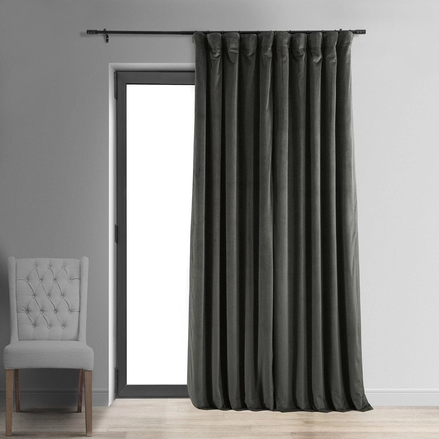 Gunmetal Grey Signature Extra Wide Velvet Blackout Curtain