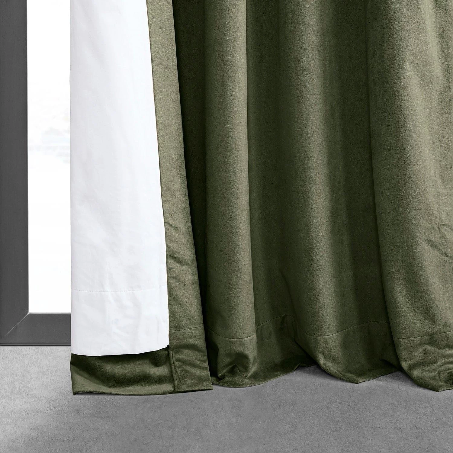 Hunter Green is earthy green. This luxurious velvet curtain is lined with off white thermal fabric.