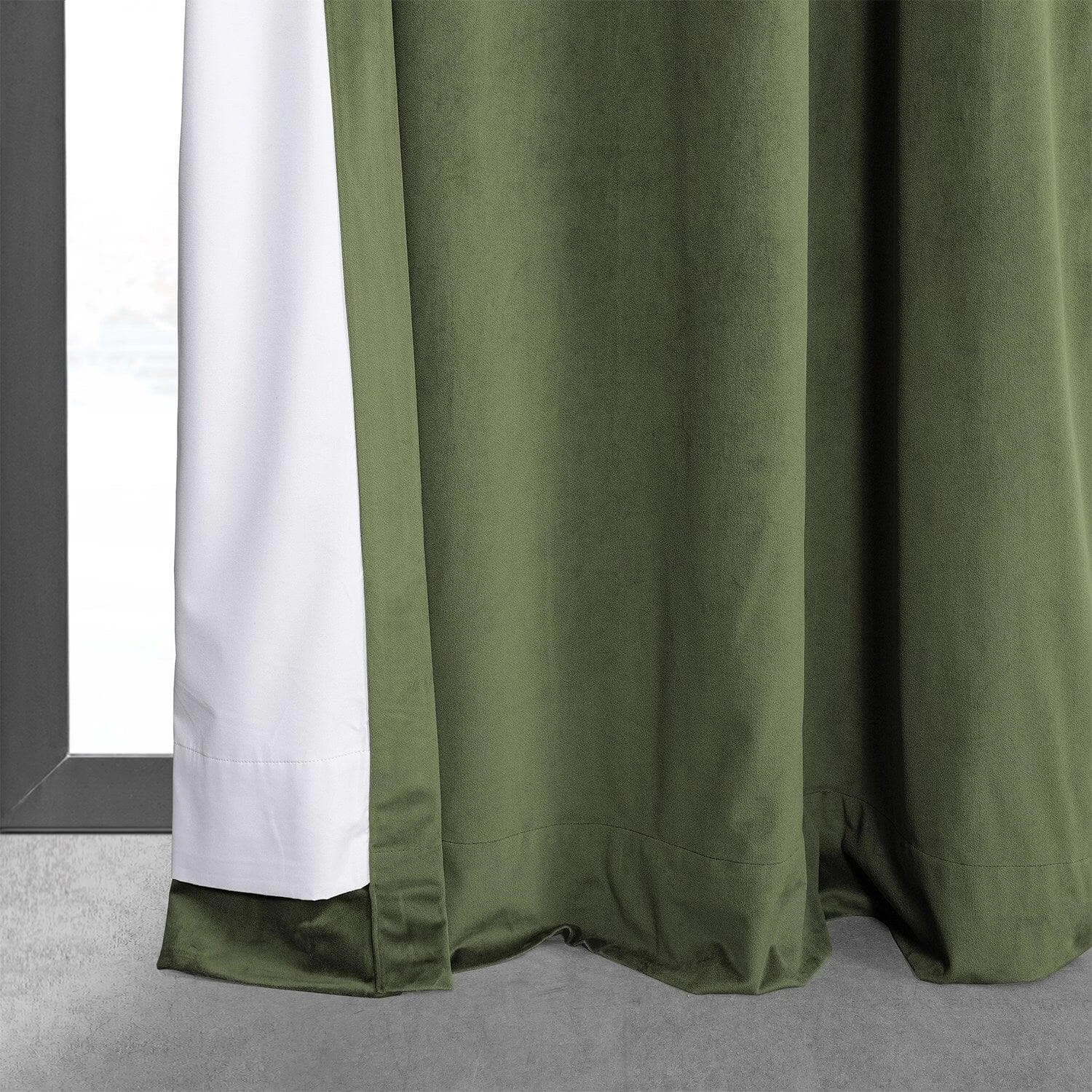 Hunter Green is earthy green. This luxurious velvet curtain is lined with off white thermal fabric.