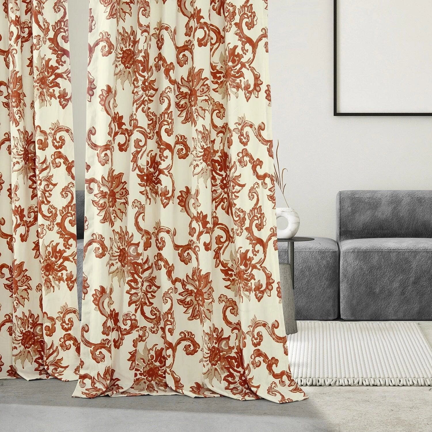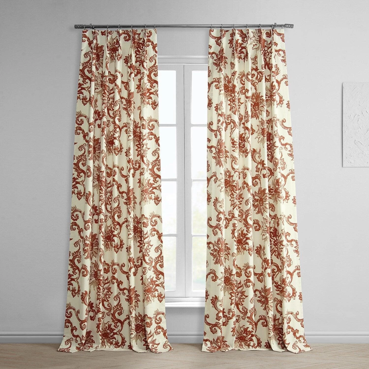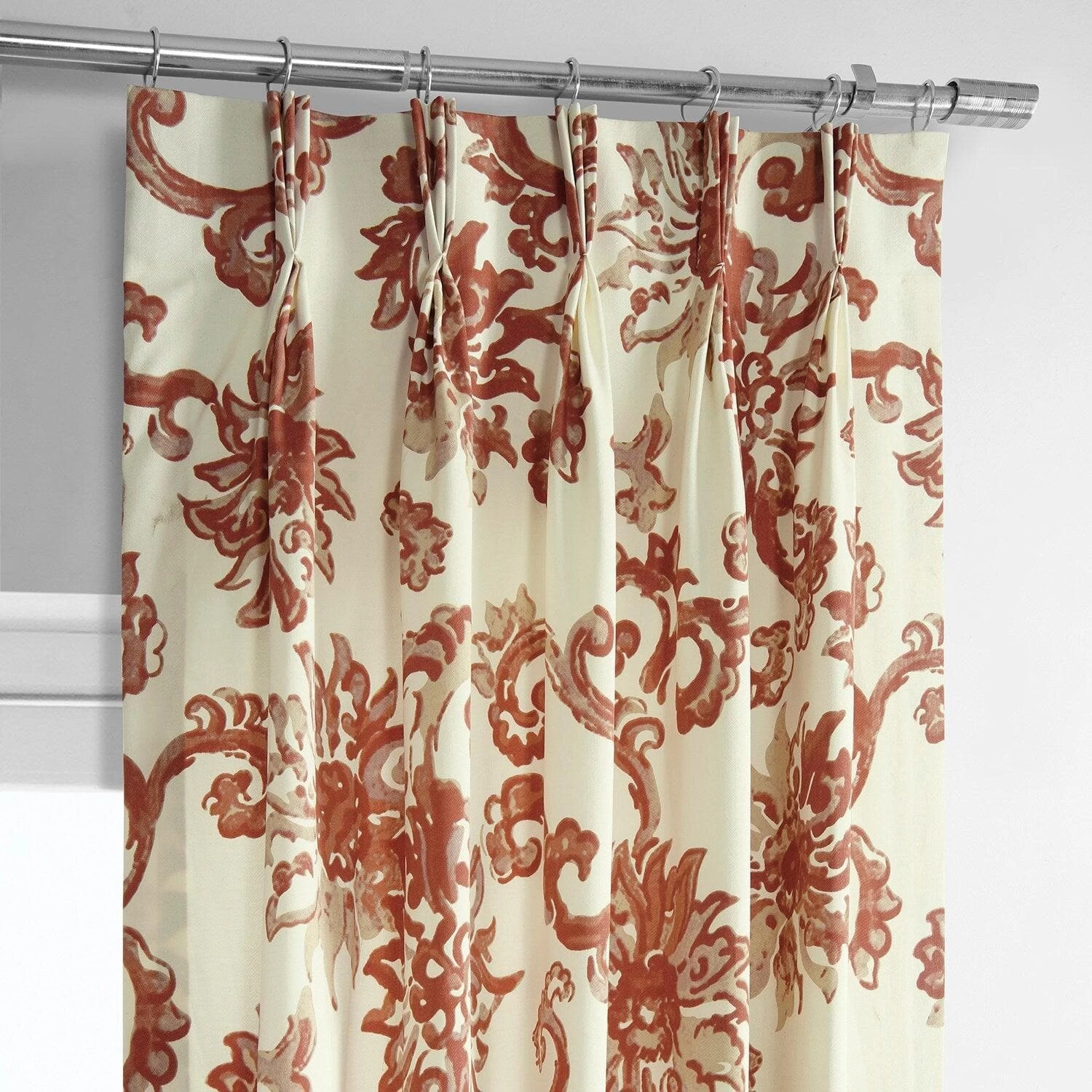 Indonesian Rust French Pleat Printed Cotton Curtain