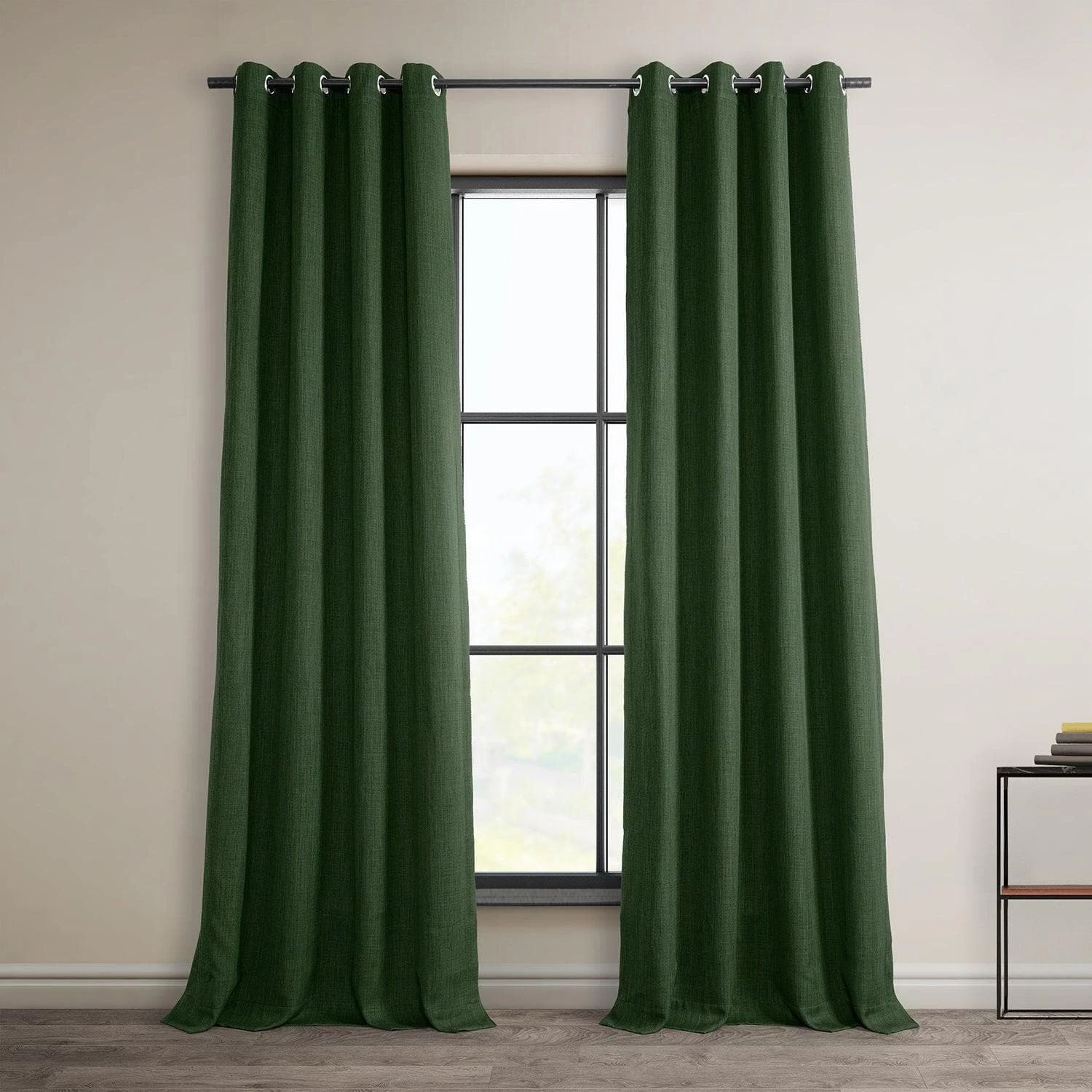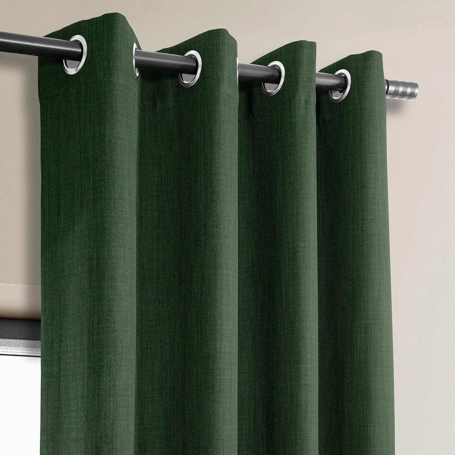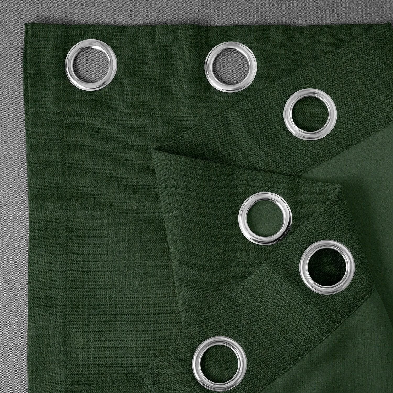 Key Green Grommet Textured Faux Linen Room Darkening Curtain