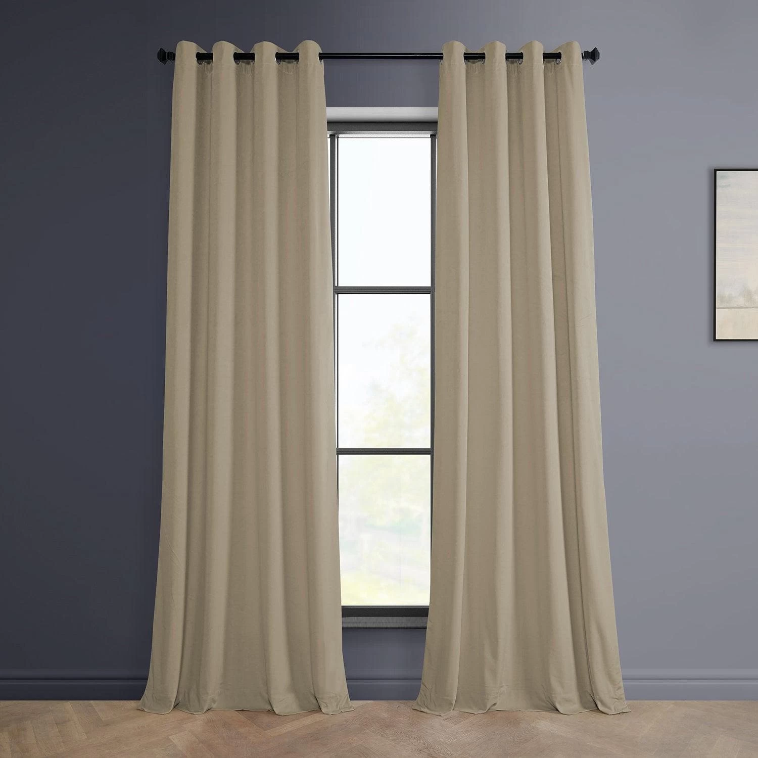 Light Beige Grommet Heritage Plush Velvet Curtain