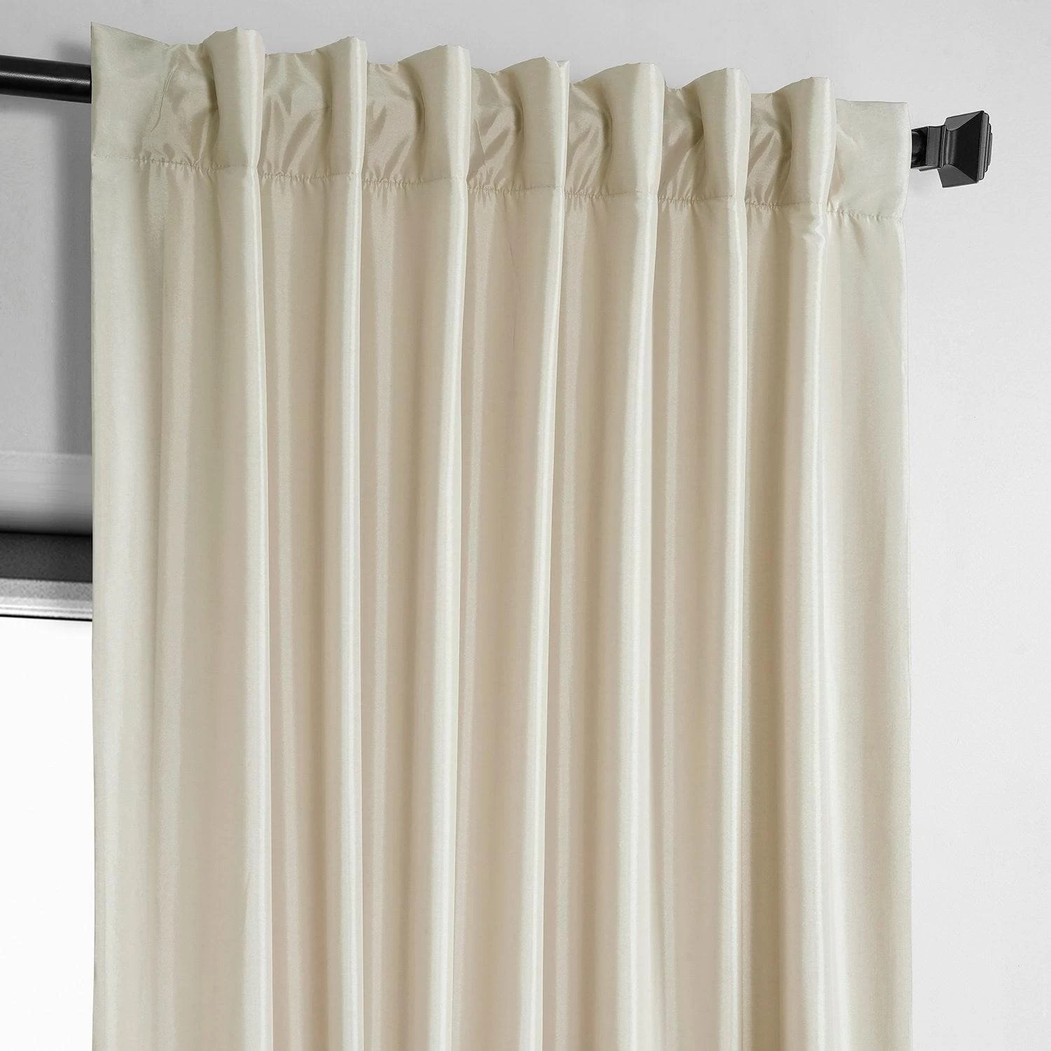 Light Beige Solid Faux Silk Taffeta Room Darkening Curtain Pair (2 Panels)