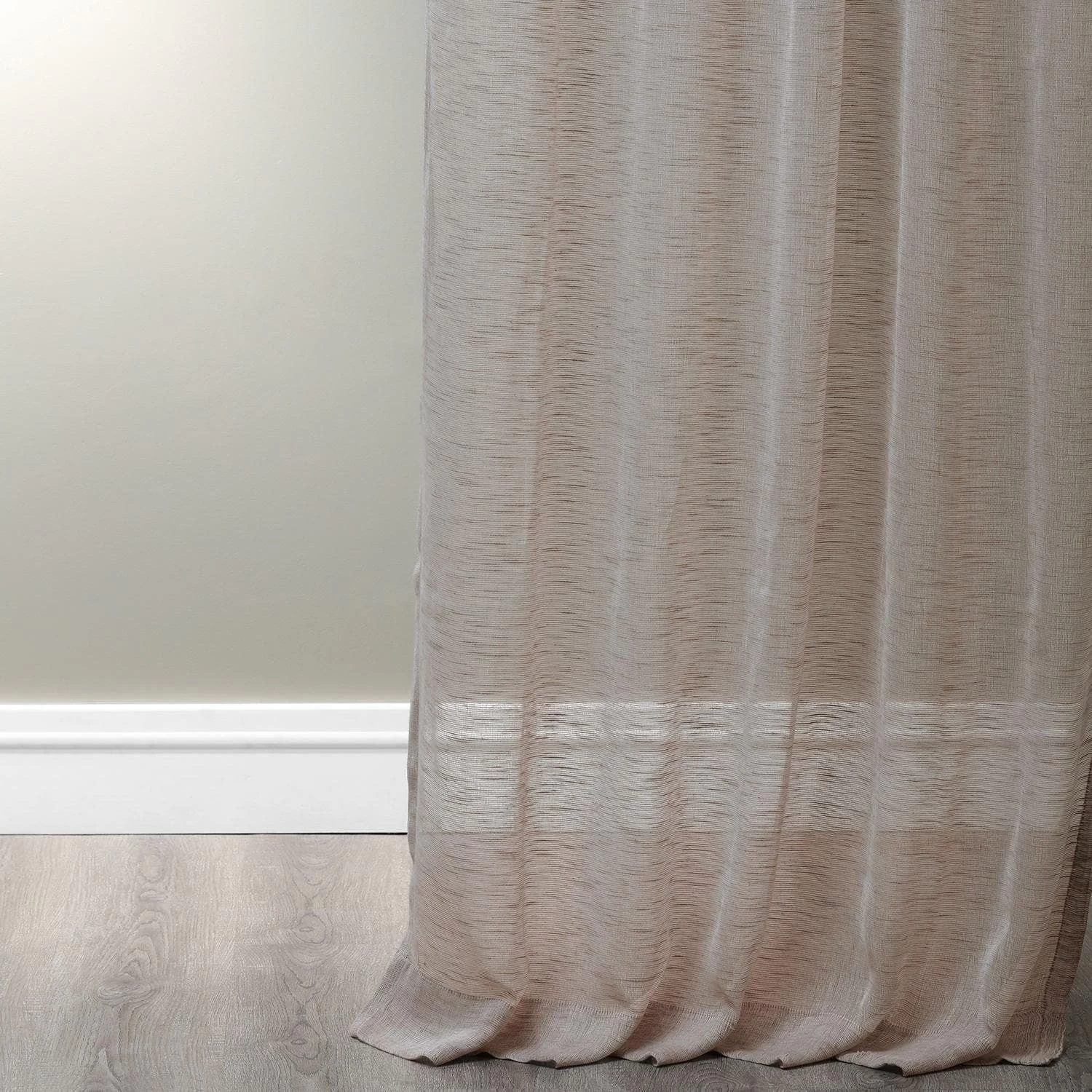 Open Weave Cinder Grey is a light grey linen blend. This light filtering sheer curtain is unlined without backing.