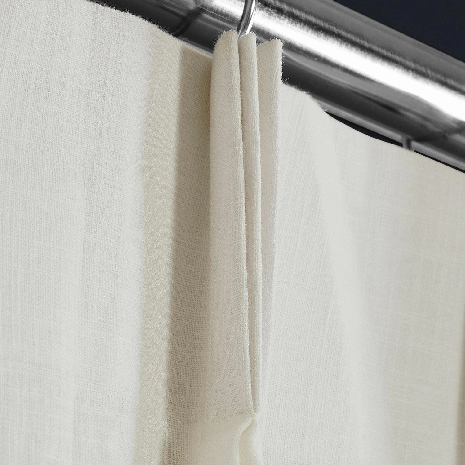 Light Ivory is a dreamy cream. This textured 100% linen light-filtering curtain is lined with a light off-white fabric.