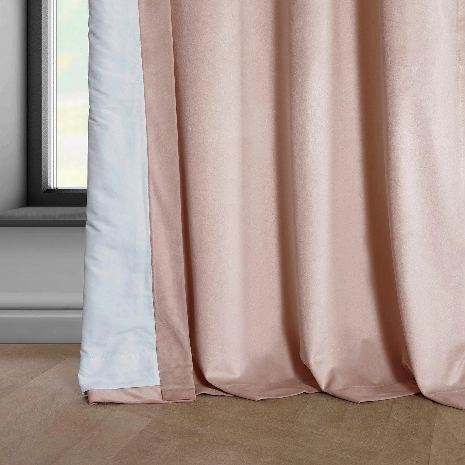Heritage Light Pink is a bright pale pink. This plush velvet curtain is lined with off white fabric.