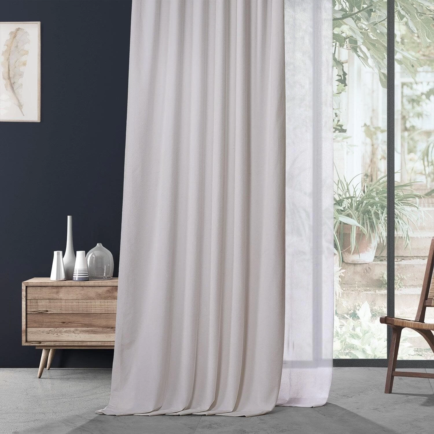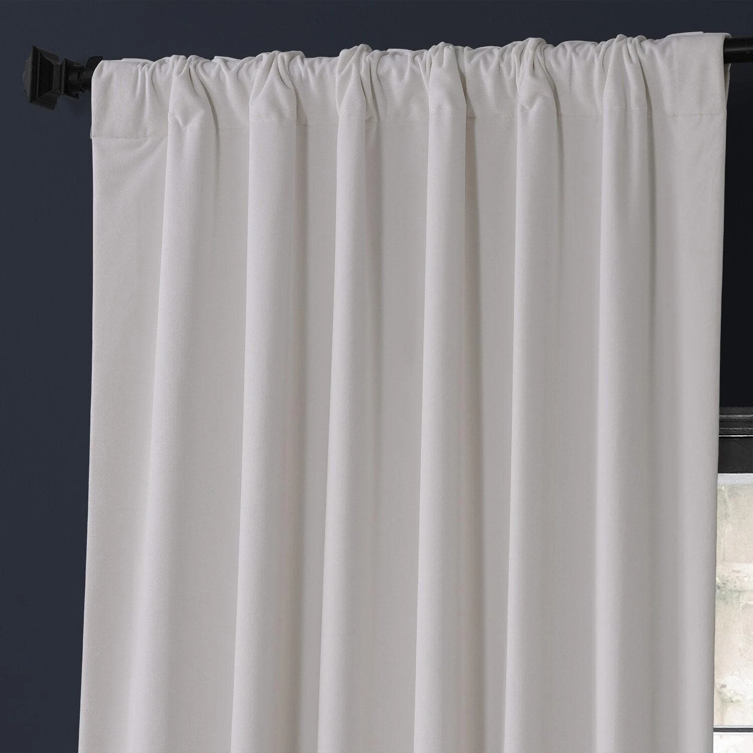 Urban Lighthouse White is a foggy off white. This lush velvet curtain is lined with off white fabric.