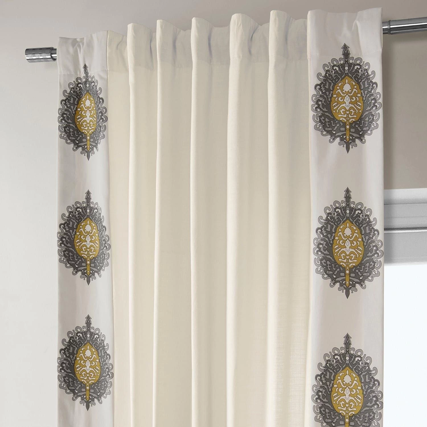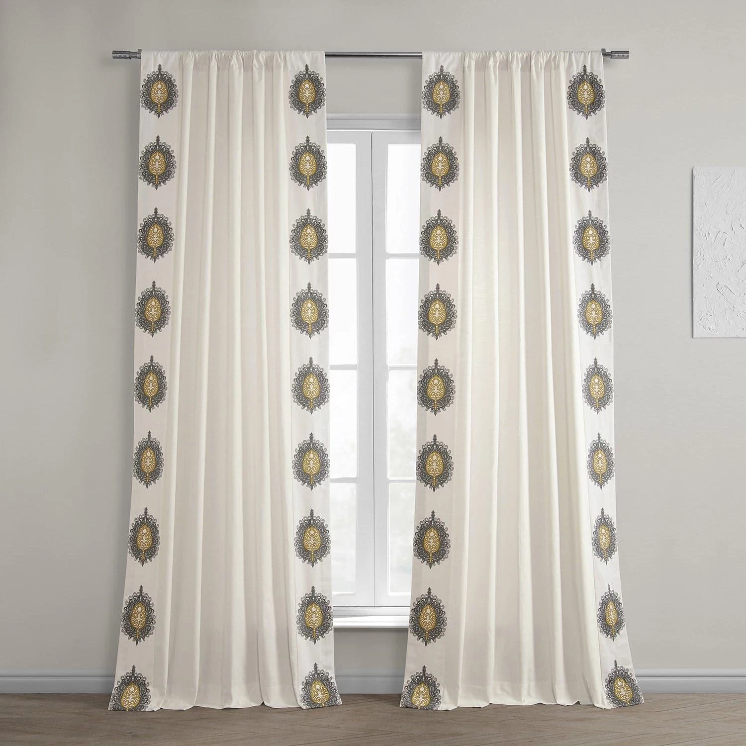 Mayan Gold side border frames a classic off-white panel. This decorative cotton curtain is unlined and has no backing.