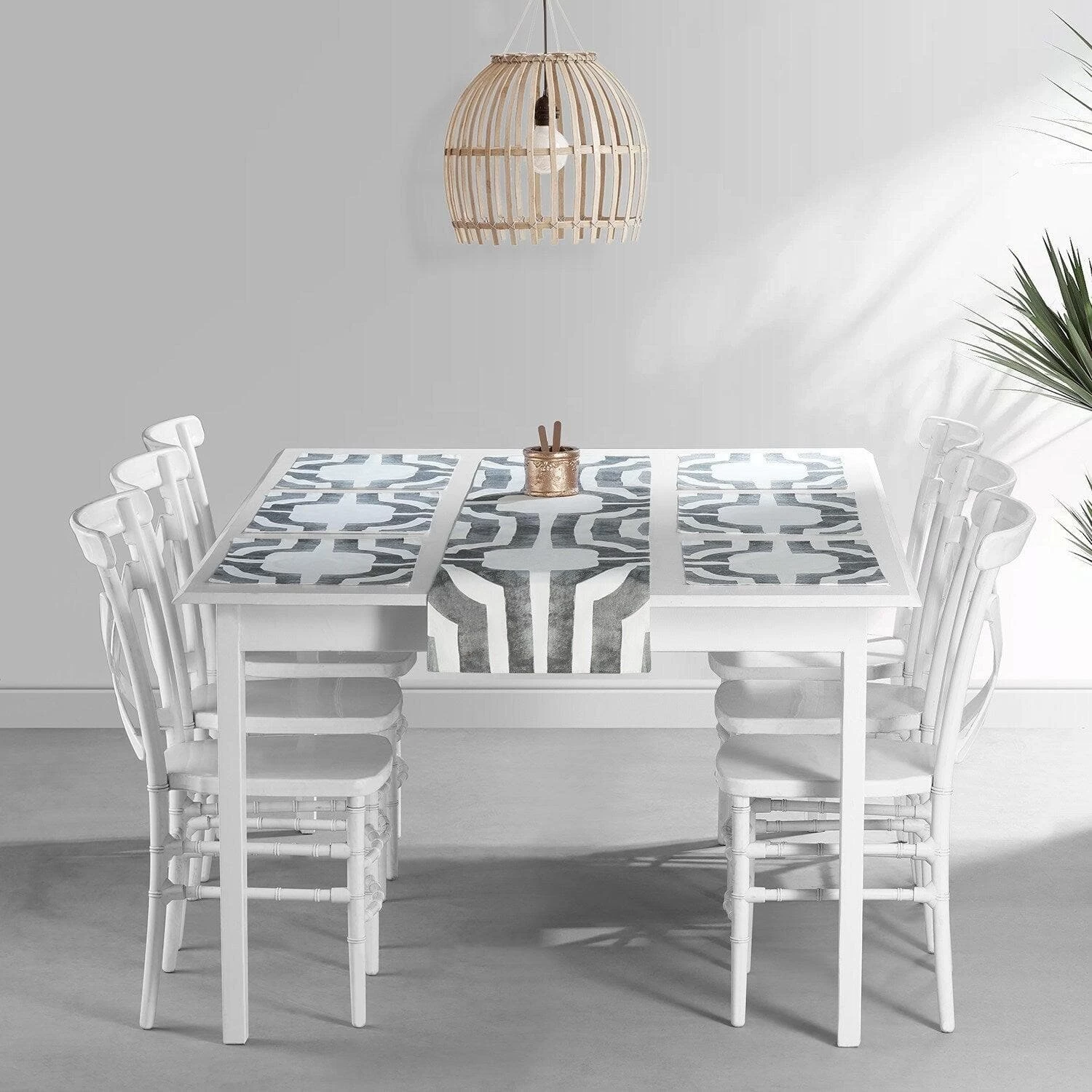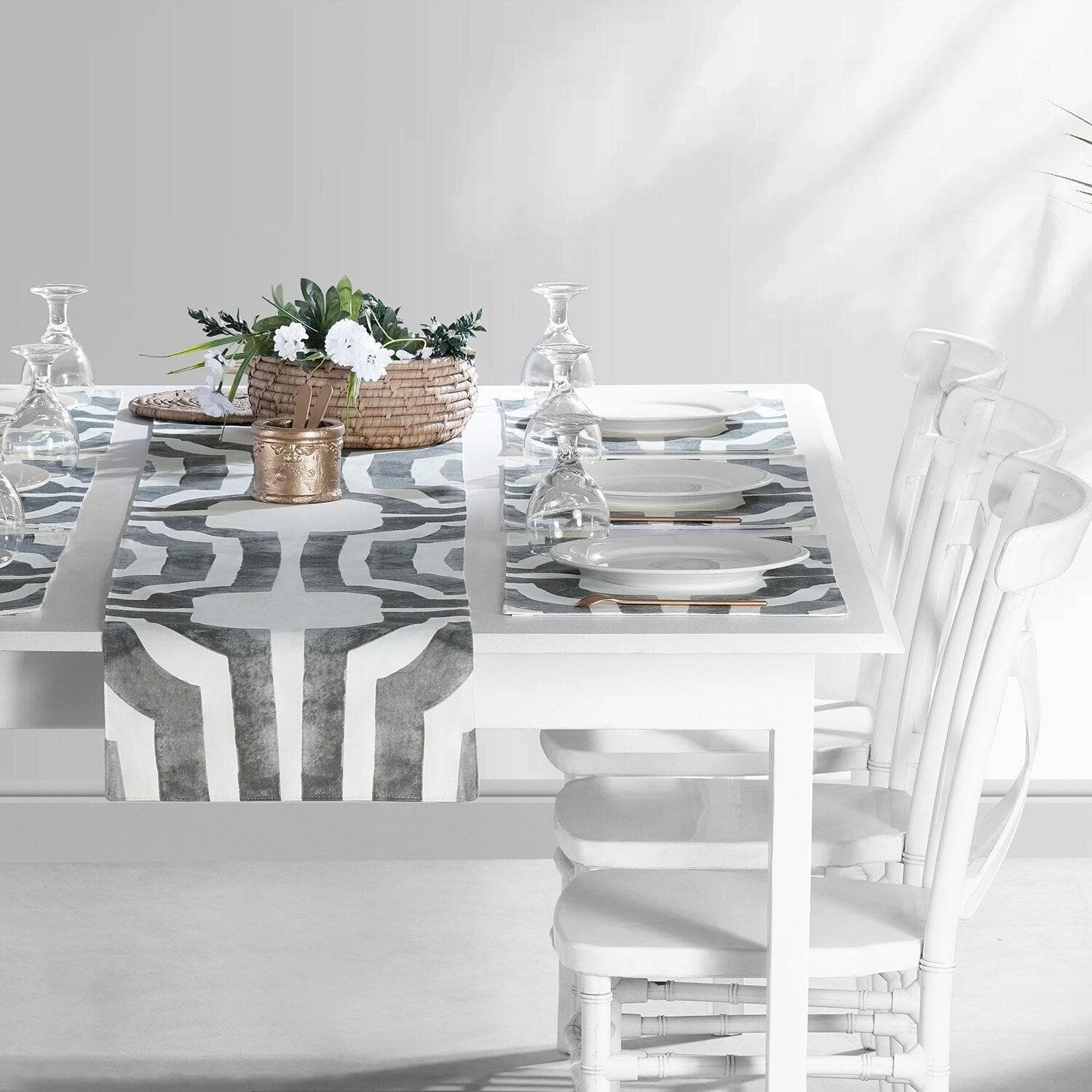 Mecca Steel Printed Cotton Table Runner & Placemats