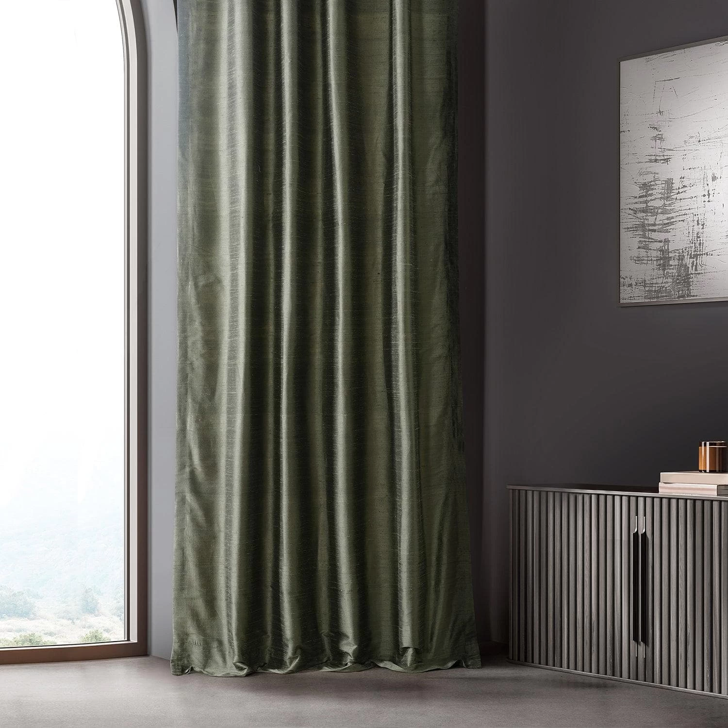 Midnight Pine Textured Dupioni Silk Curtain