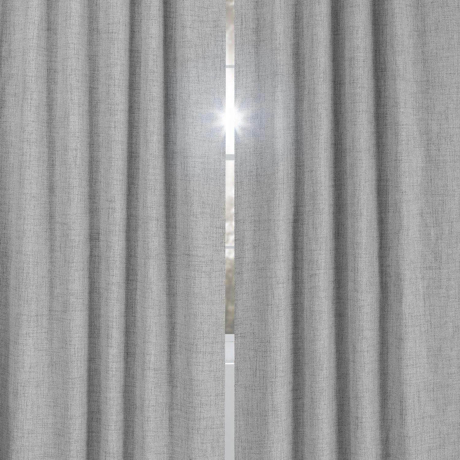 Millenial Grey is a light and dark steel grey cross linen weave. This linen-look curtain is unlined and is backed with coated off white fabric.
