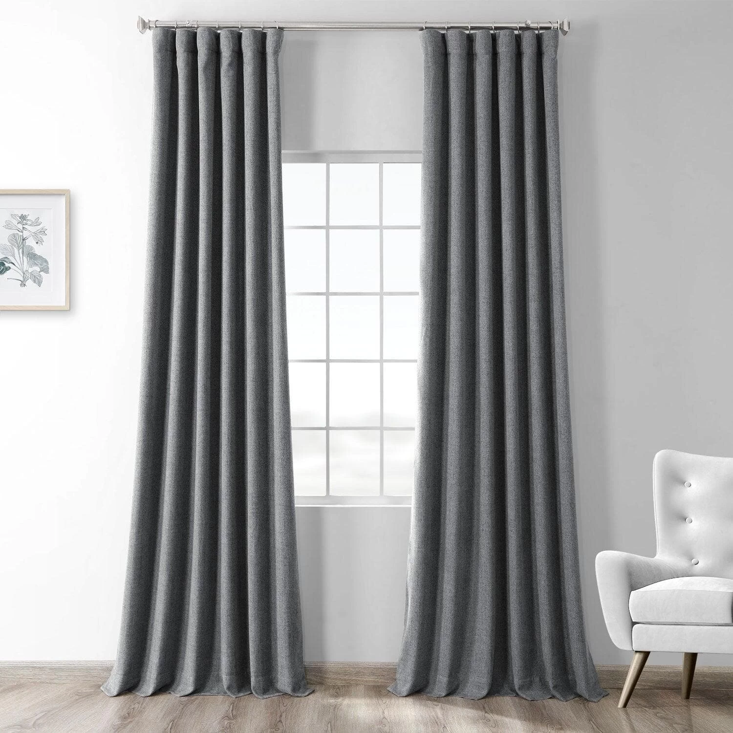 Modern Grey Heathered Woolen Weave Curtain