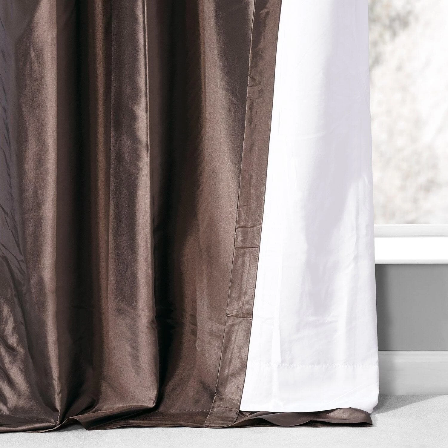 Mushroom is a lustrous dark copper brown. This taffeta curtain is lined with off white fabric.