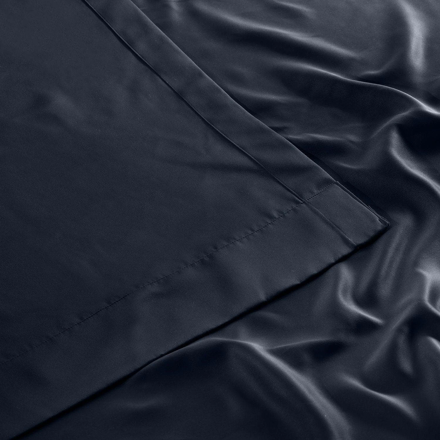 Navy Blue is dark blue on both sides. This soft, smooth curtain is unlined.