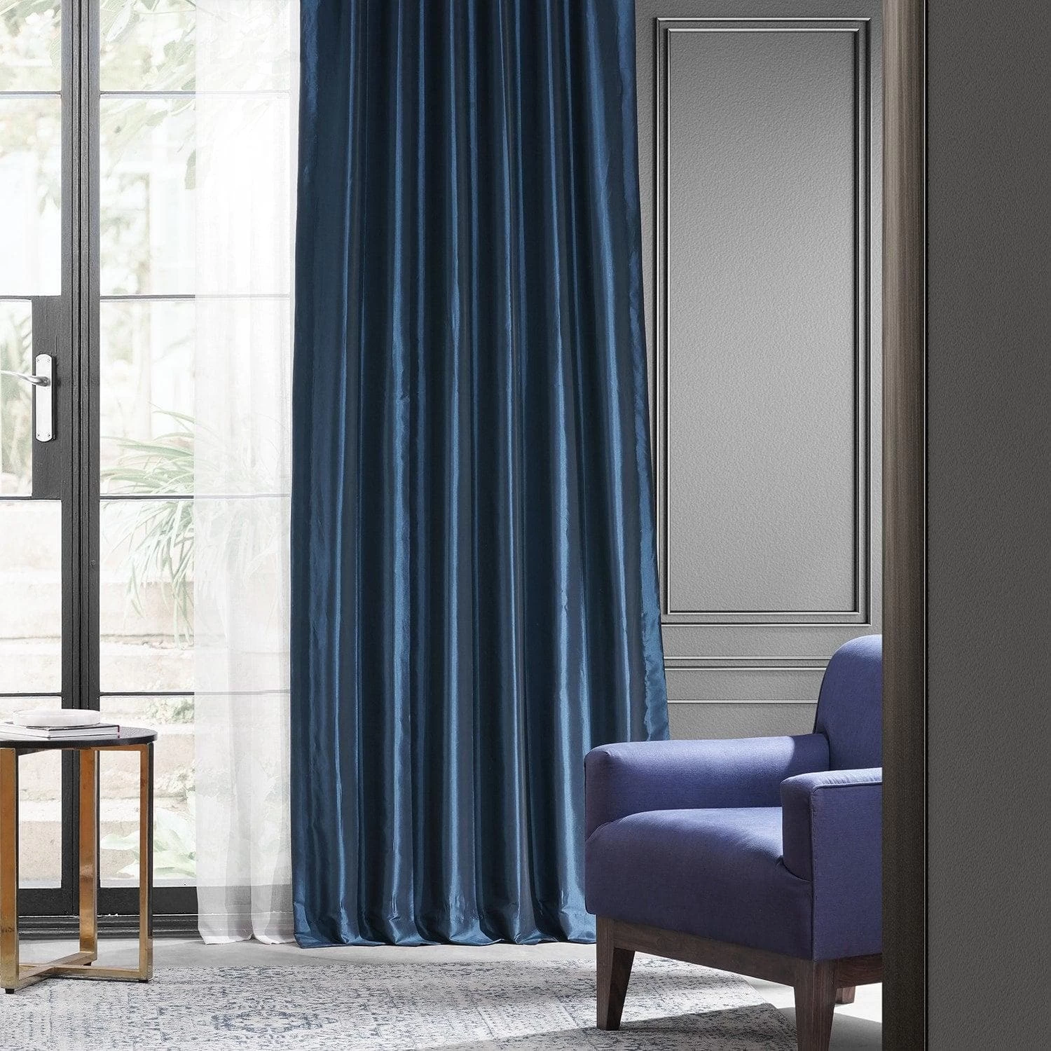 Navy Blue Faux Silk Taffeta Blackout Curtain