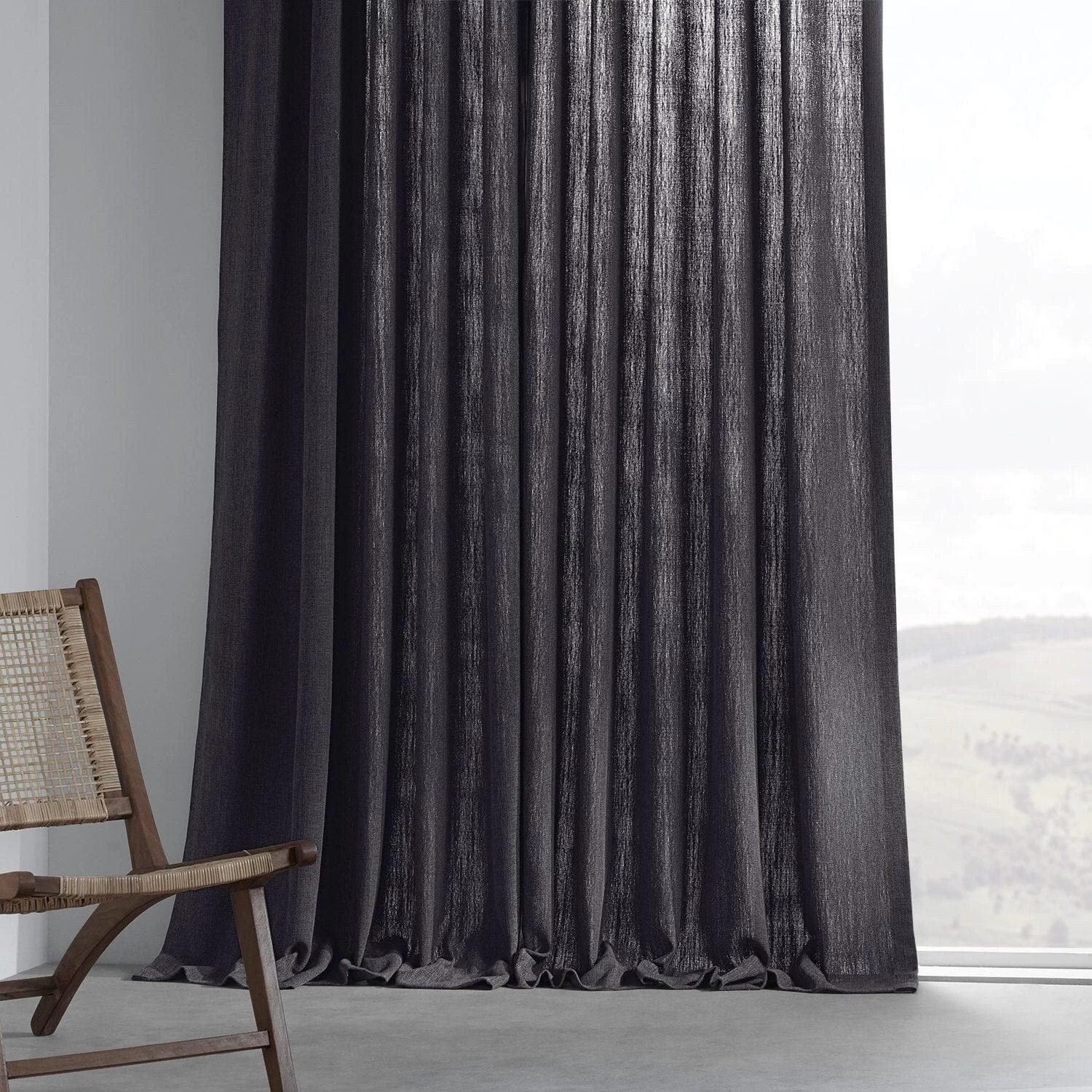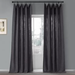 Nightshade Grey Pebble Weave Faux Linen Curtain